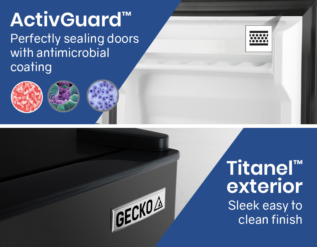 The Gecko is designed to perform in harsh Australian conditions. The latest compressor technology and thick insulation ensure that it can cool fast. It can also operate in ambient temperatures up to 38 degrees! The Gecko range features ActivSealTM technology that combines perfectly sealing doors with an anti-microbial coating to inhibit the growth of bacteria and mould. All this is wrapped in a sleek TitanelTM metal finish, ensuring it will look right at home anywhere, and is also ready for your souvenir magnet collection!