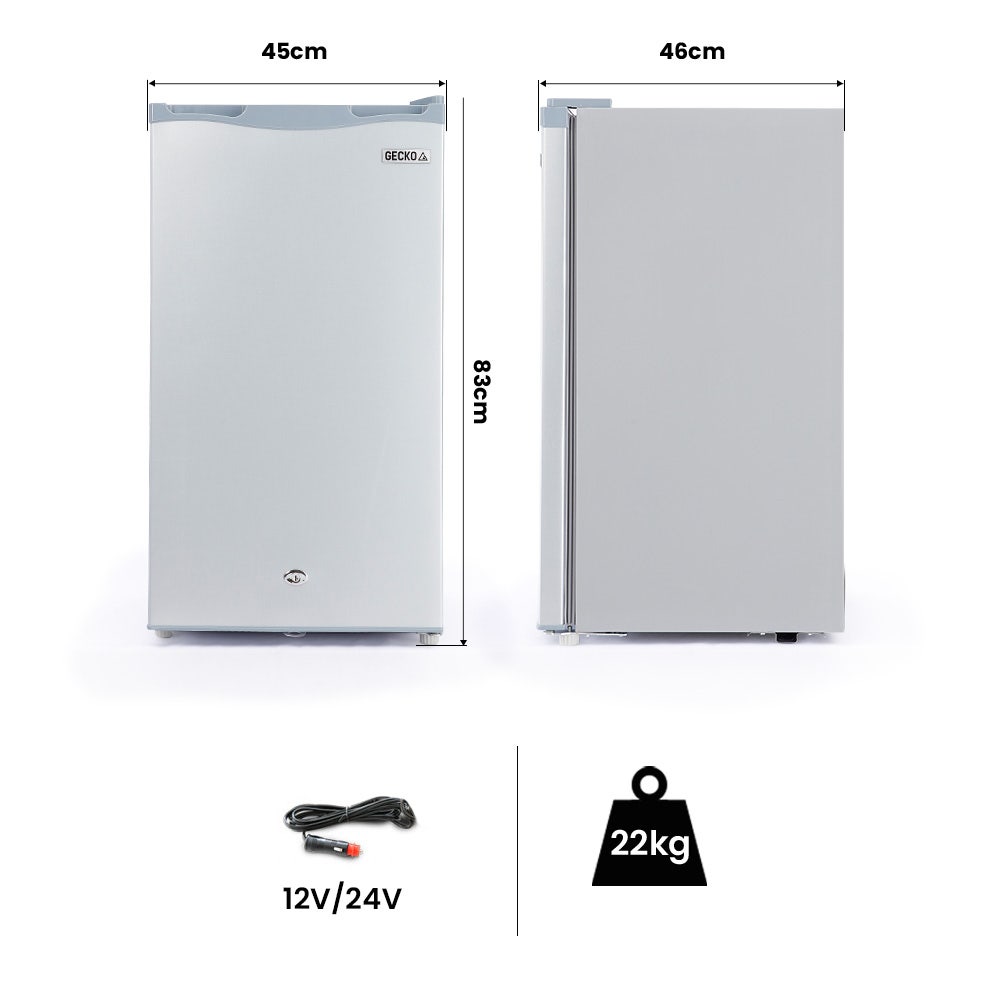 GECKO 95L Portable Upright Fridge and Freezer, 12V/24V for Camping, Caravans, Silver