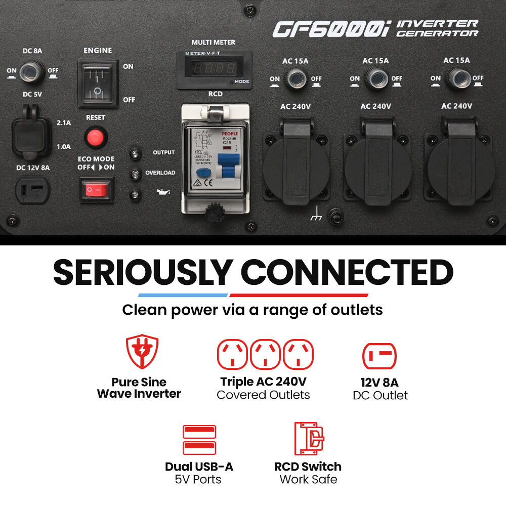 • 1 x GenPower GF6000i Open Frame Inverter Generator
