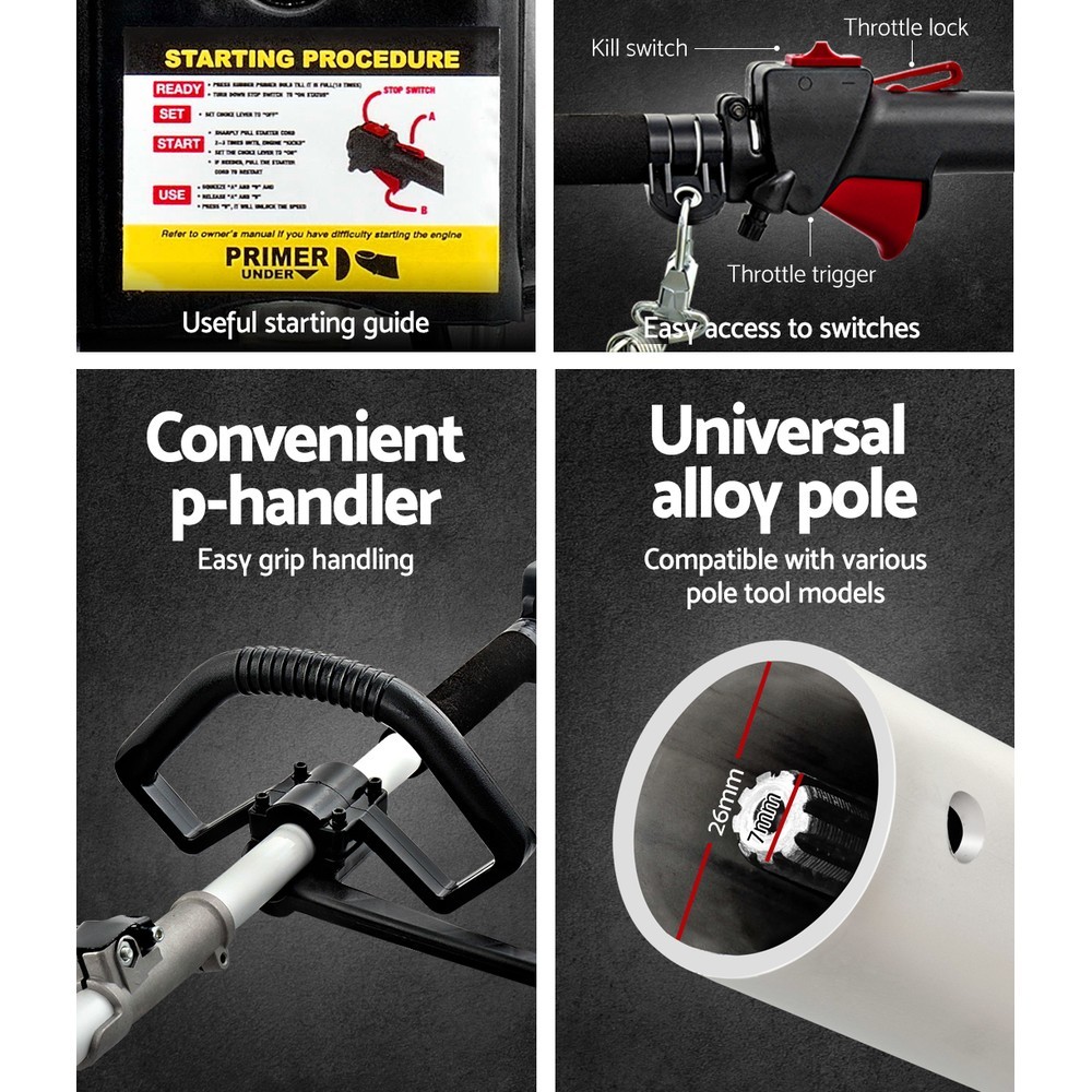Giantz 40CC Pole Chainsaw 12in Chain Saw 4-Stroke Petrol 4.3m Long Reach