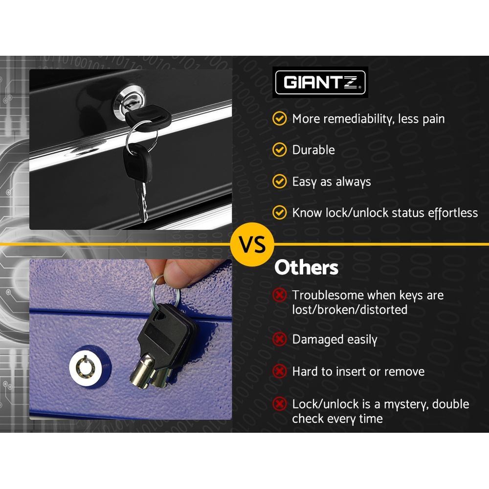 This robust, multi-drawer Giantz Tool Trolley is an essential for any workshop. Crafted from durable steel, it features smooth ball-bearing slides for easy access and a secure lock system for safety. Its spacious design includes varying drawer sizes to accommodate tools of all shapes, complete with non-slip liners. The chest is also mounted on omni-directional castors with locakble front wheels, ensuring a smooth maneuverability and stable positioning. Sleek and functional, it’s perfect for organizing and protecting your valuable tools.