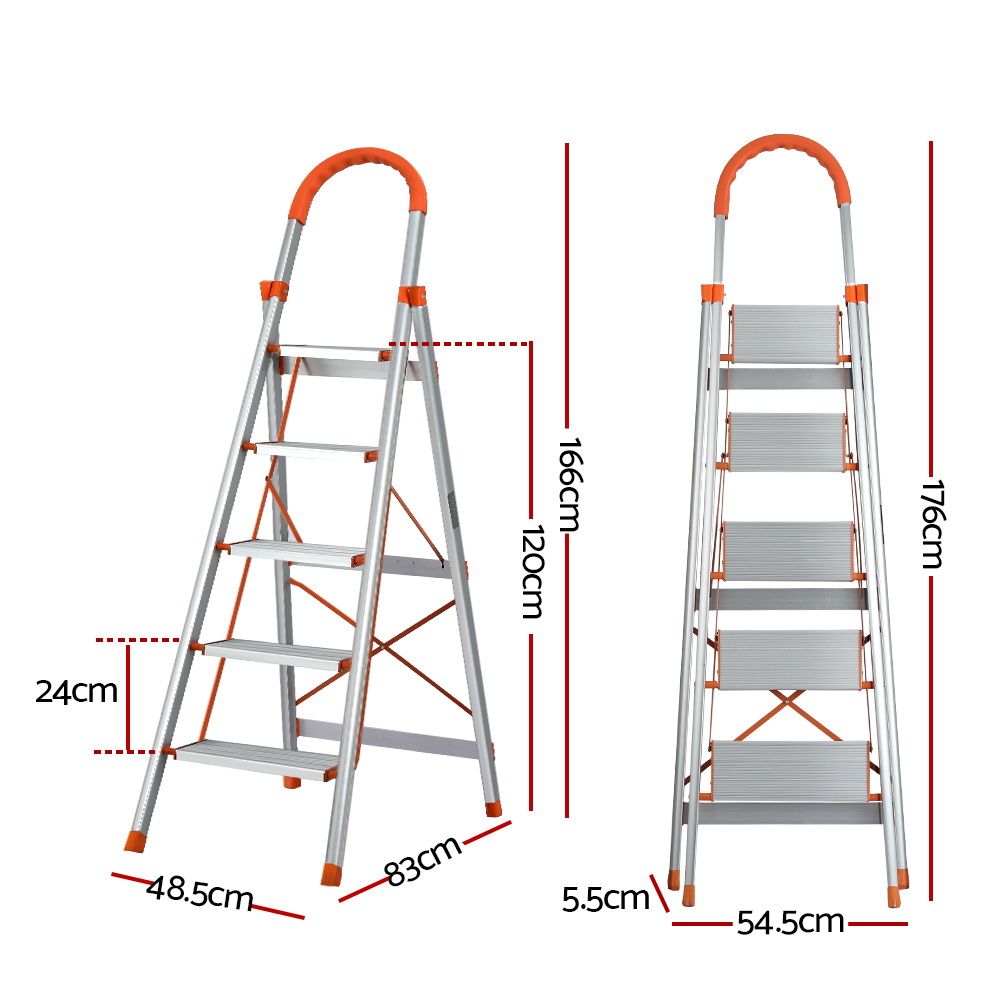 Giantz 5 Step Ladder Multi-Purpose Folding Aluminium Light Weight Non Slip Platform