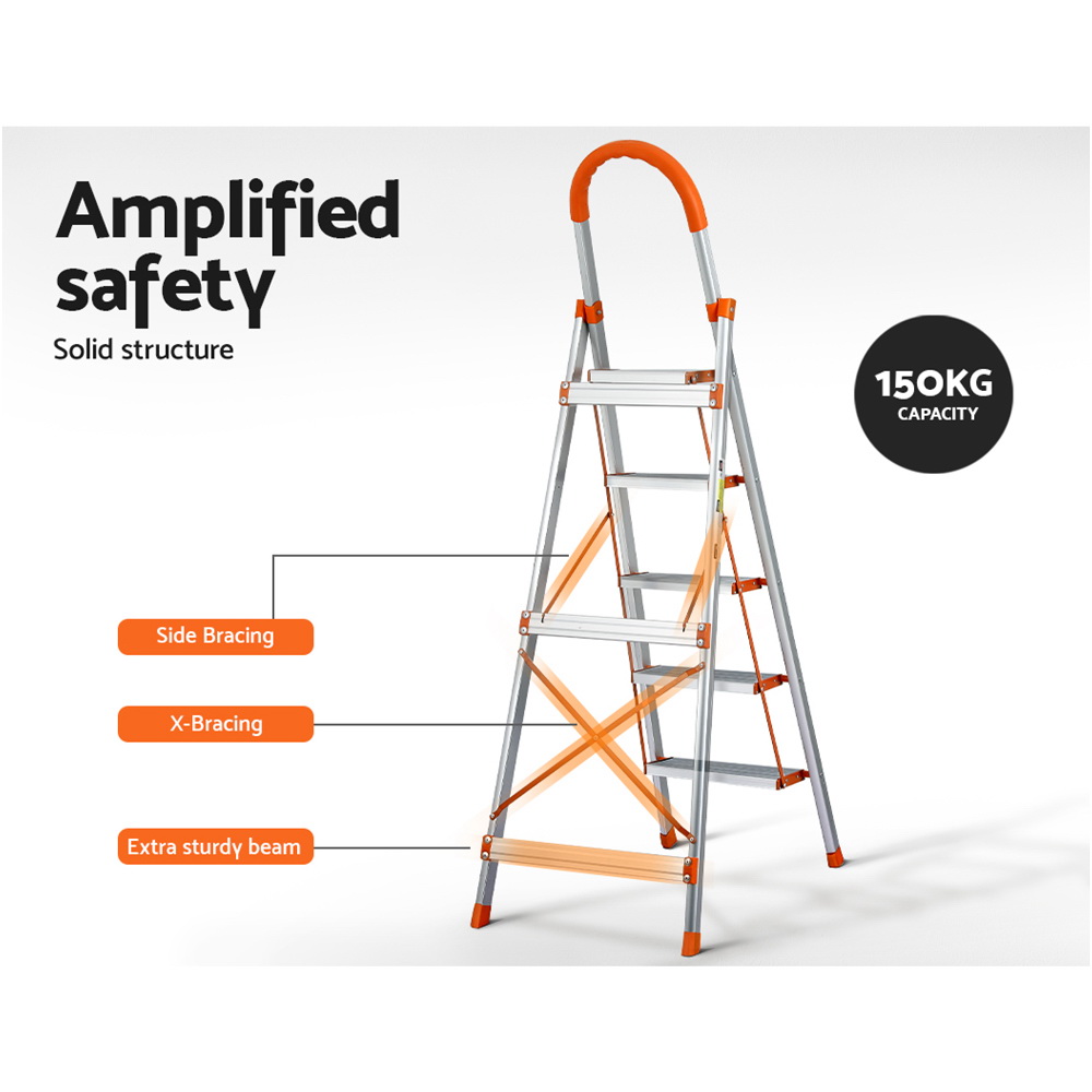 Giantz 6 Step Ladder Multi-Purpose Folding Aluminium Light Weight Non Slip Platform