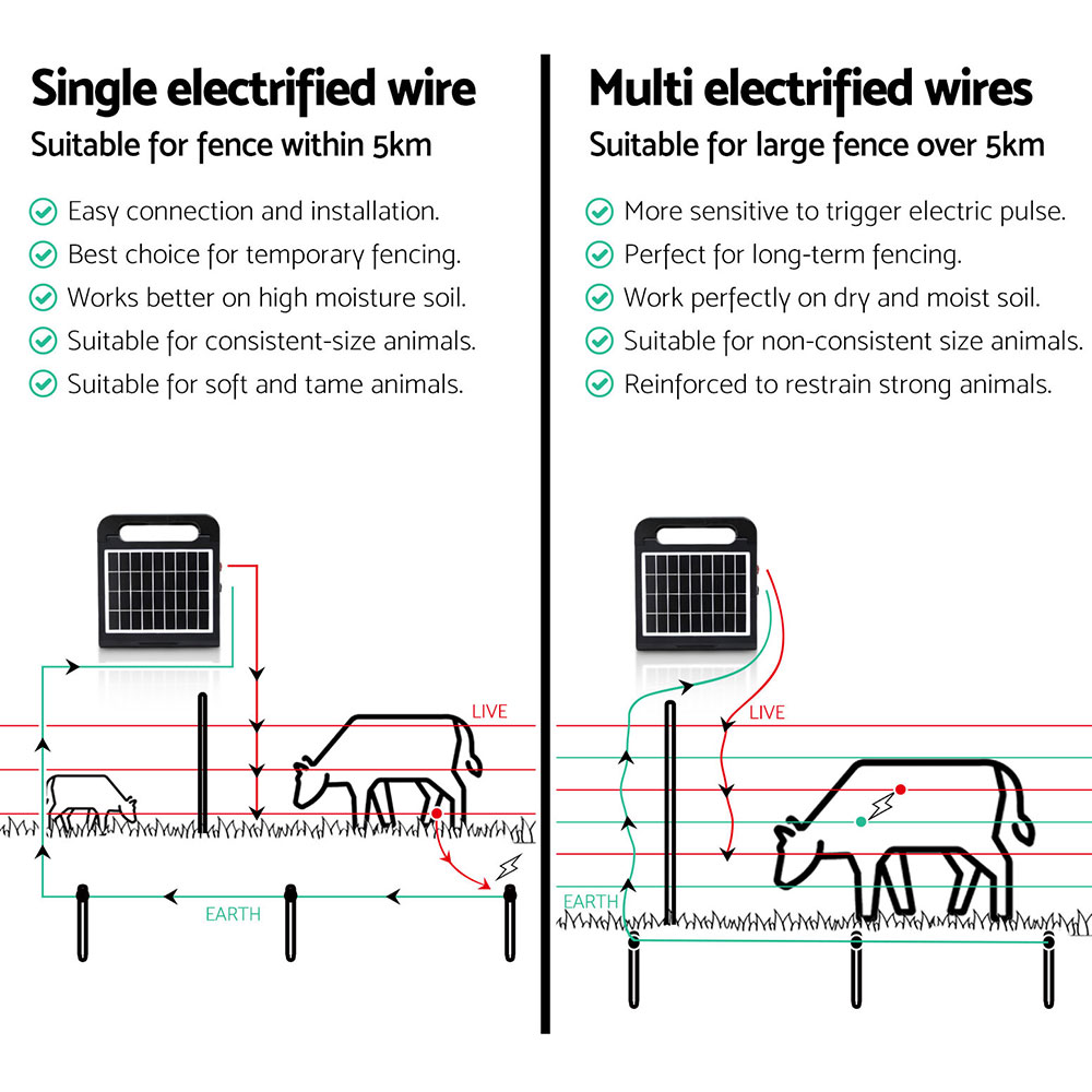 Giantz 5km Electric Fence Energiser Solar Energizer Charger Farm Animal 0.15J