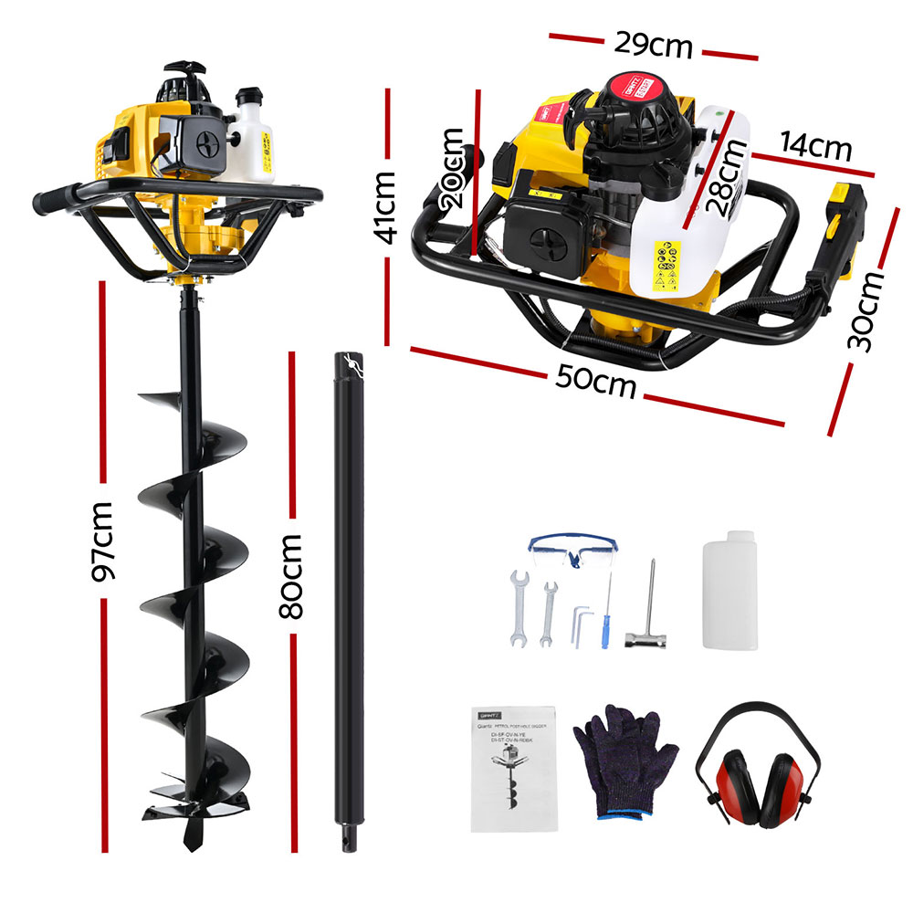 Giantz 82CC Post Hole Digger 300mm Petrol Drill Auger Extension Bits