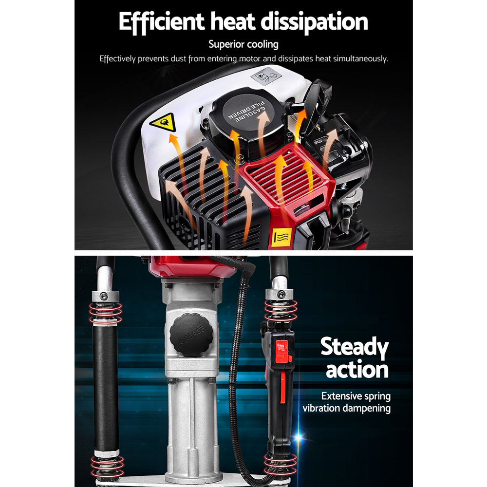 Giantz Petrol Post Driver 2-Stroke 55CC Rammer Pile Star Picket Fence Hole Red