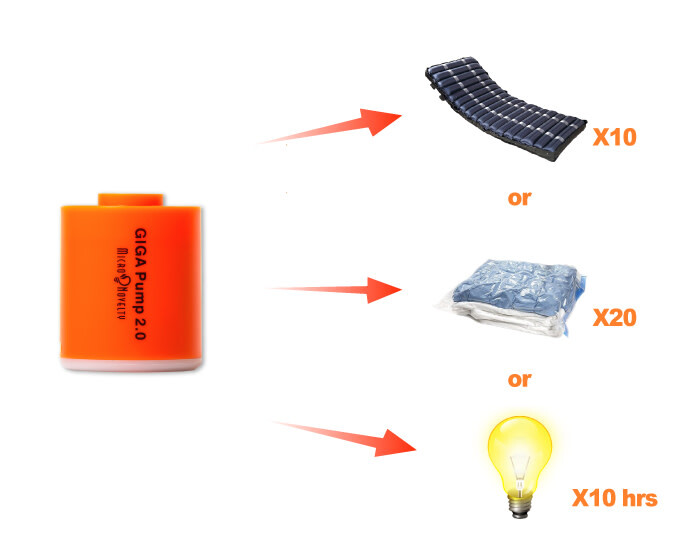 GIGA Pump was launched at MicroNovelty website 2 years ago, it is a multifunctional and portable air pump for both your outdoor activities and your daily life.Now the GIGA Pump 2.0 is launching and it will provide you more surprise with its ultra design of air Pump, vacuum pump and Lantern 3 in 1, and it is also the most portable but powerful pump in the world. GIGA Pump 2.0 is the new generation of portable pumps.