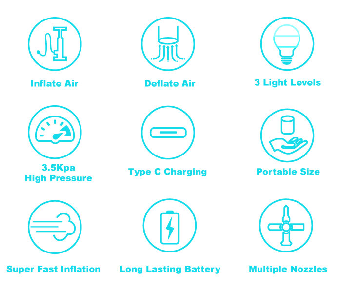- Fast Inflate Speed:With a 180L/min flow rate and 3.5kpa high pressure, GIGA Pump 2.0 could fully fast inflate a single air mattress in just 30 seconds