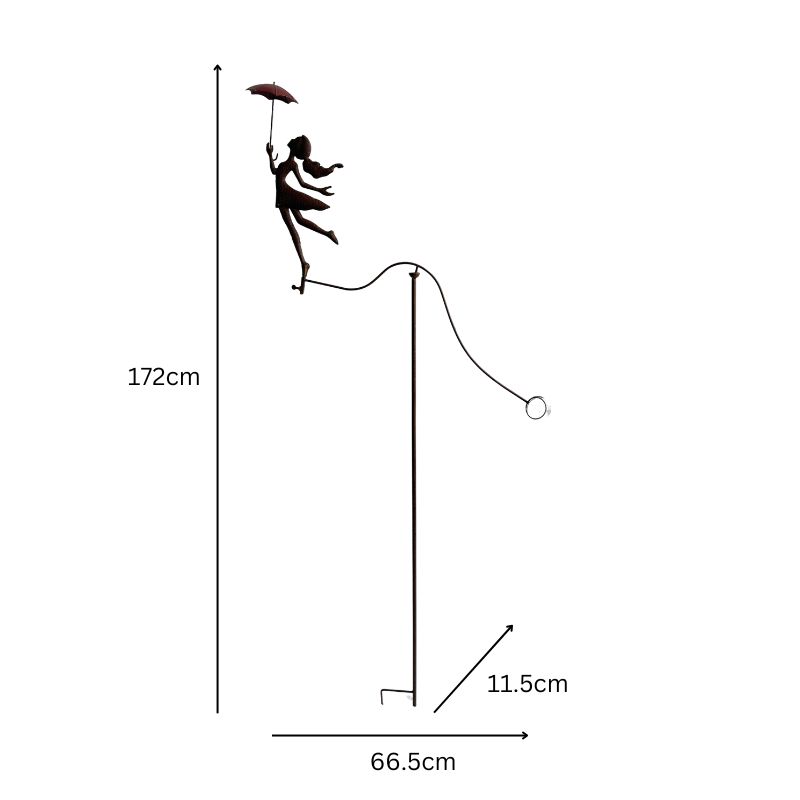 Girl w Red Umbrella Spinner / Balancing Garden Stake 67cm