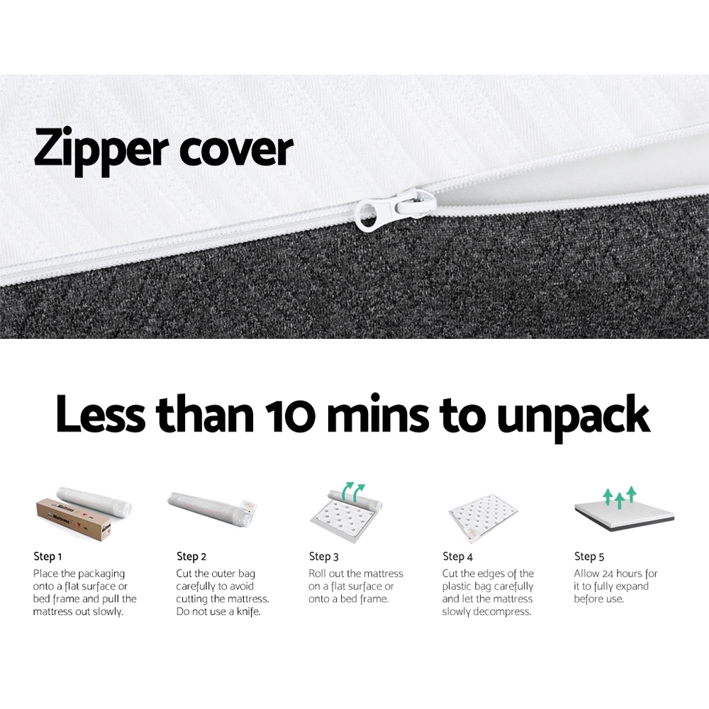 Sink into comfort with the luxuriously soft and sleep-inducing Giselle Bedding Memory Foam Mattress. The mattress features a multi-layer foam structure and dual-sided firmness to ensure the ultimate comfort. The top layer features CertiPUR-US certified cool gel memory foam to keep you at the ideal temperature during the night. The middle layer is constructed of egg-crate foam to provide comfort to back and side sleepers, as it provides additional support on the spine, hips and shoulders. The final layer consists of high-density foam to promote better sleep and pressure relief. The mattress overall has a soft-medium firmness that is ideal for a wide range of sleepers. The mattress is made from hypoallergenic, dust-mite-resistant jacquard knitted fabric and has a washable, removable zip cover for easy cleaning. With such amazing support, you’ll experience zero partner disturbance throughout the night, empowering you to get a great night’s sleep every night. Your mattress arrives perfectly vacuum-packed and ready for you to remove and expand. What are you waiting for? Available in Single, Double, Queen and King sizes, you can sleep happy on your brand-new Giselle Bedding Memory Foam Mattress.