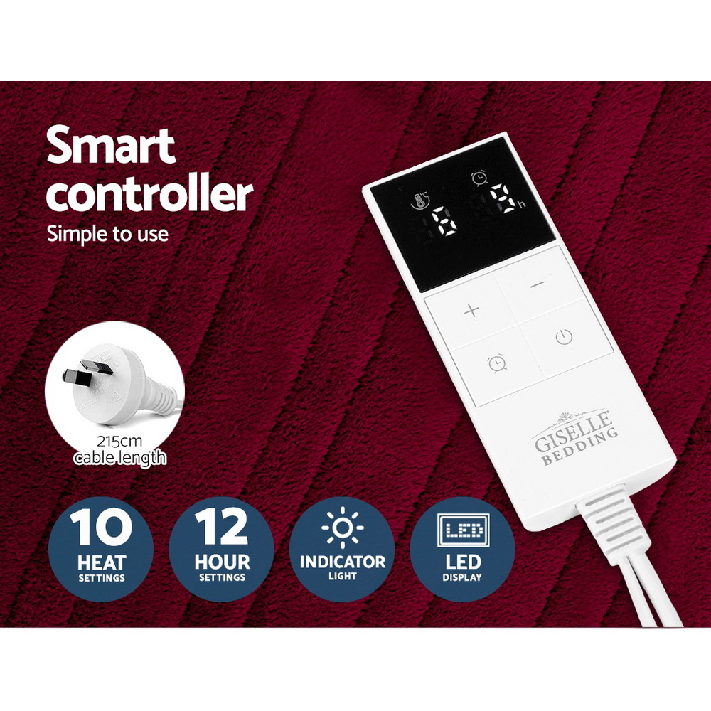 Giselle Electric Throw Rug Heated Blanket Fleece Red
