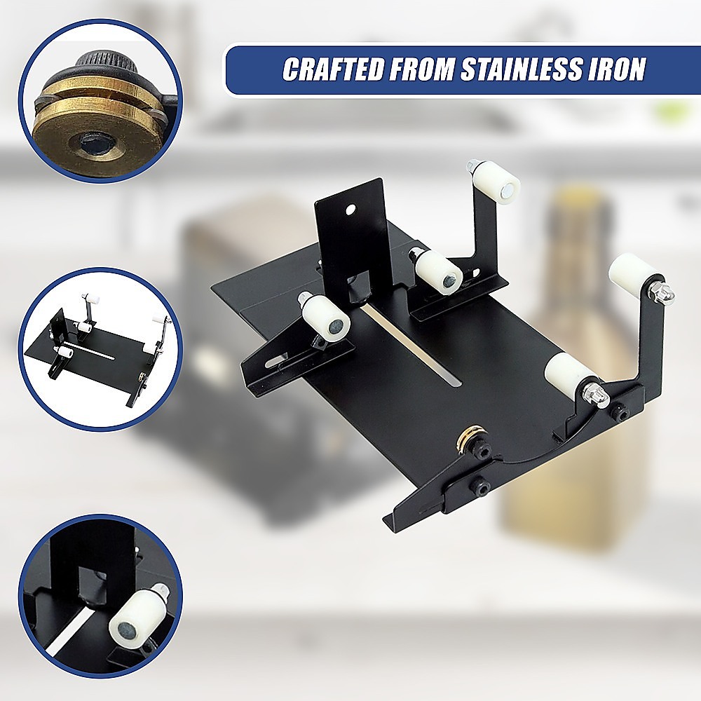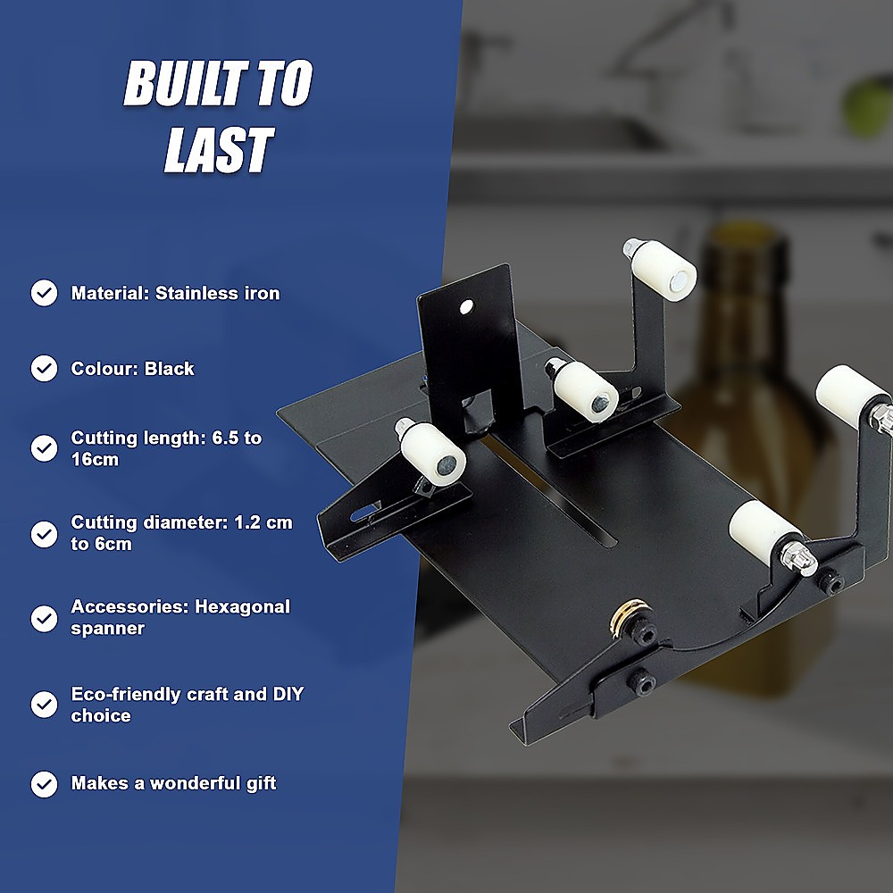 How often have you looked at an empty wine or whiskey bottle and thought, It's too pretty to throw away!' If only you had a way to cut it safely and easily, you could repurpose those bottles to create gorgeous vases, cache-pots, candleholders, and other household items. With this sturdy bottle cutter by Randy Travis Machinery, you can cut bottles of varying sizes to make whatever your creative mind can envision in only five steps. With a range of adjustability that varies from 6.5 centimetres to 16, you can cut any non-embossed bottle with ease. Simply place the bottle on the supports, print it and rotate, rotate again and draw a line, and then heat up the line over some boiling water. Dip the line in cold water three times, and the bottle will break into two, with smooth edges that you never have to worry about accidental cuts.