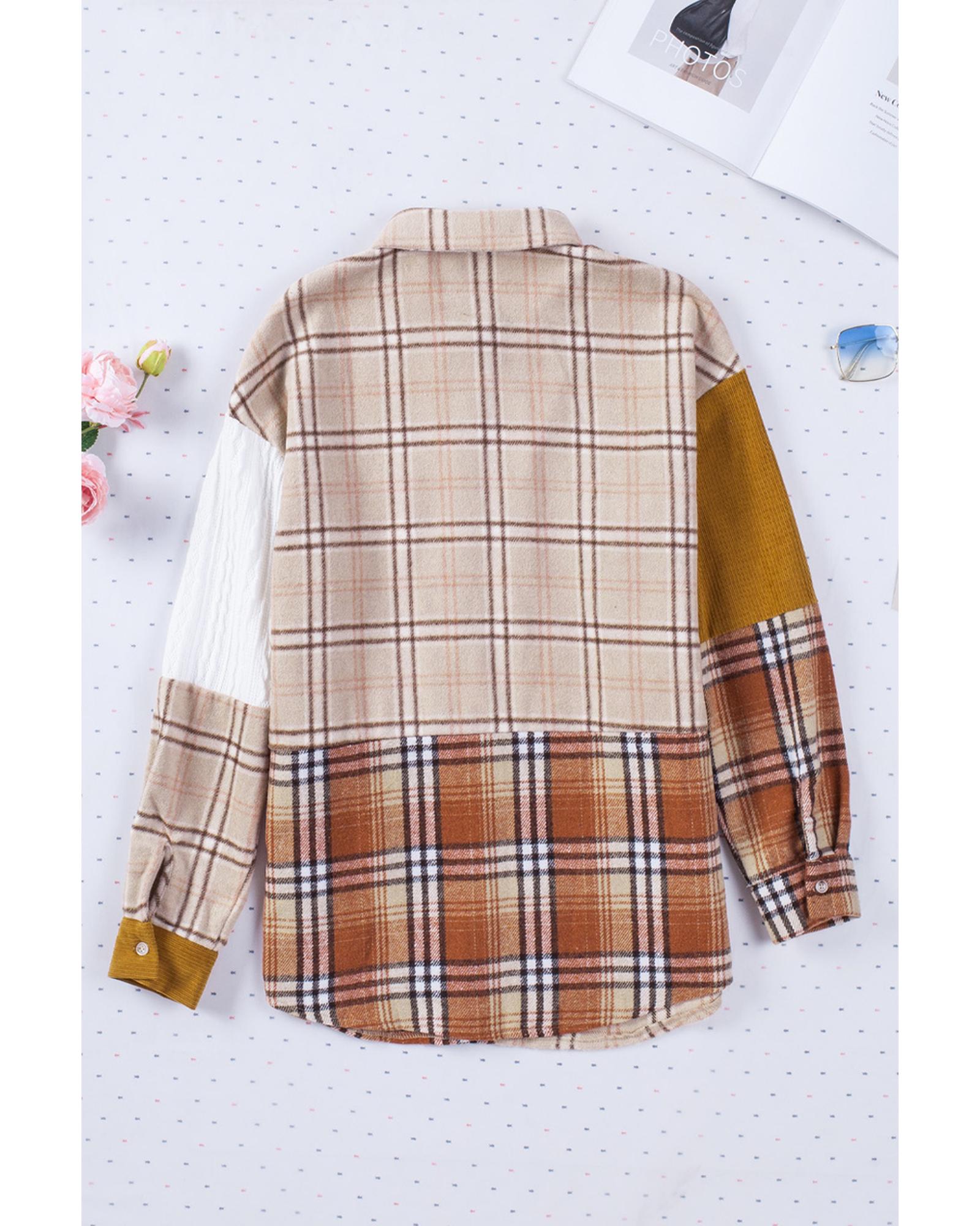 Gold Brick Plus Size Plaid Patchwork Button up Shacket – 1X