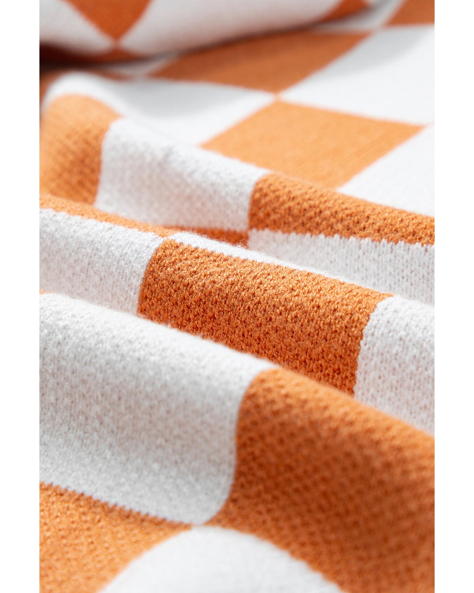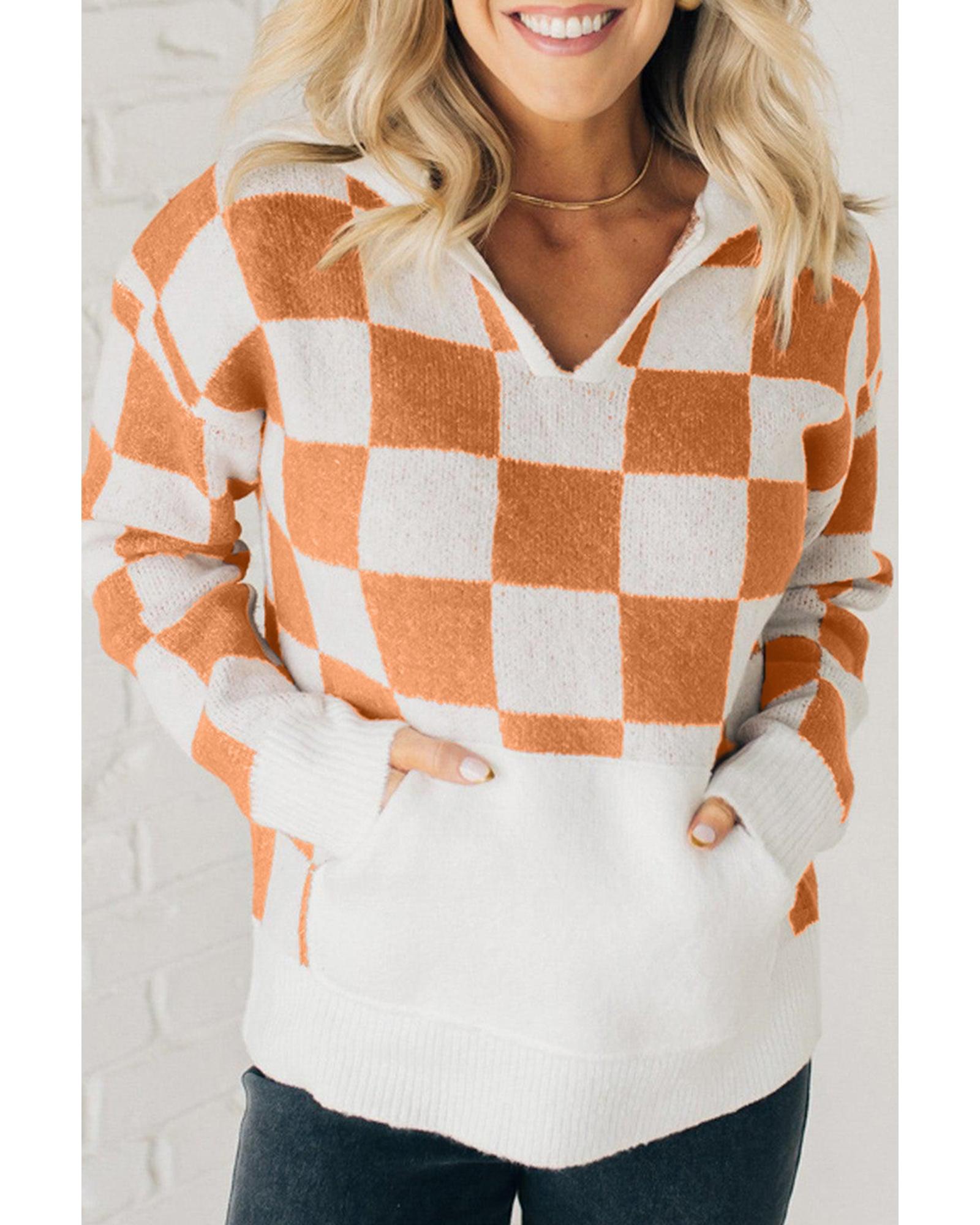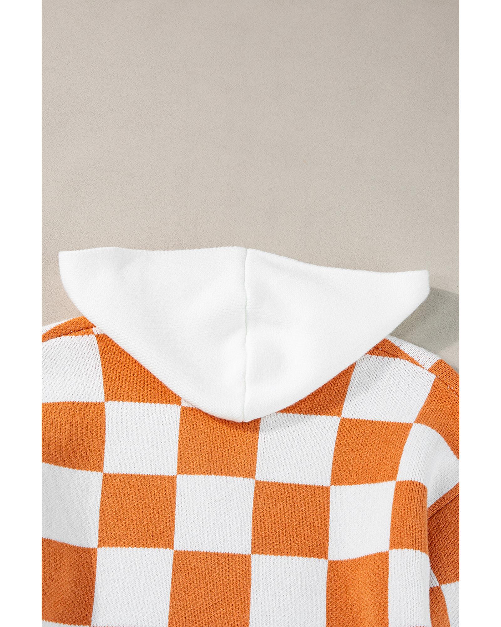 Gold Flame Checkered Split Neck Contrast Kangaroo Pocket Hooded Sweater – S