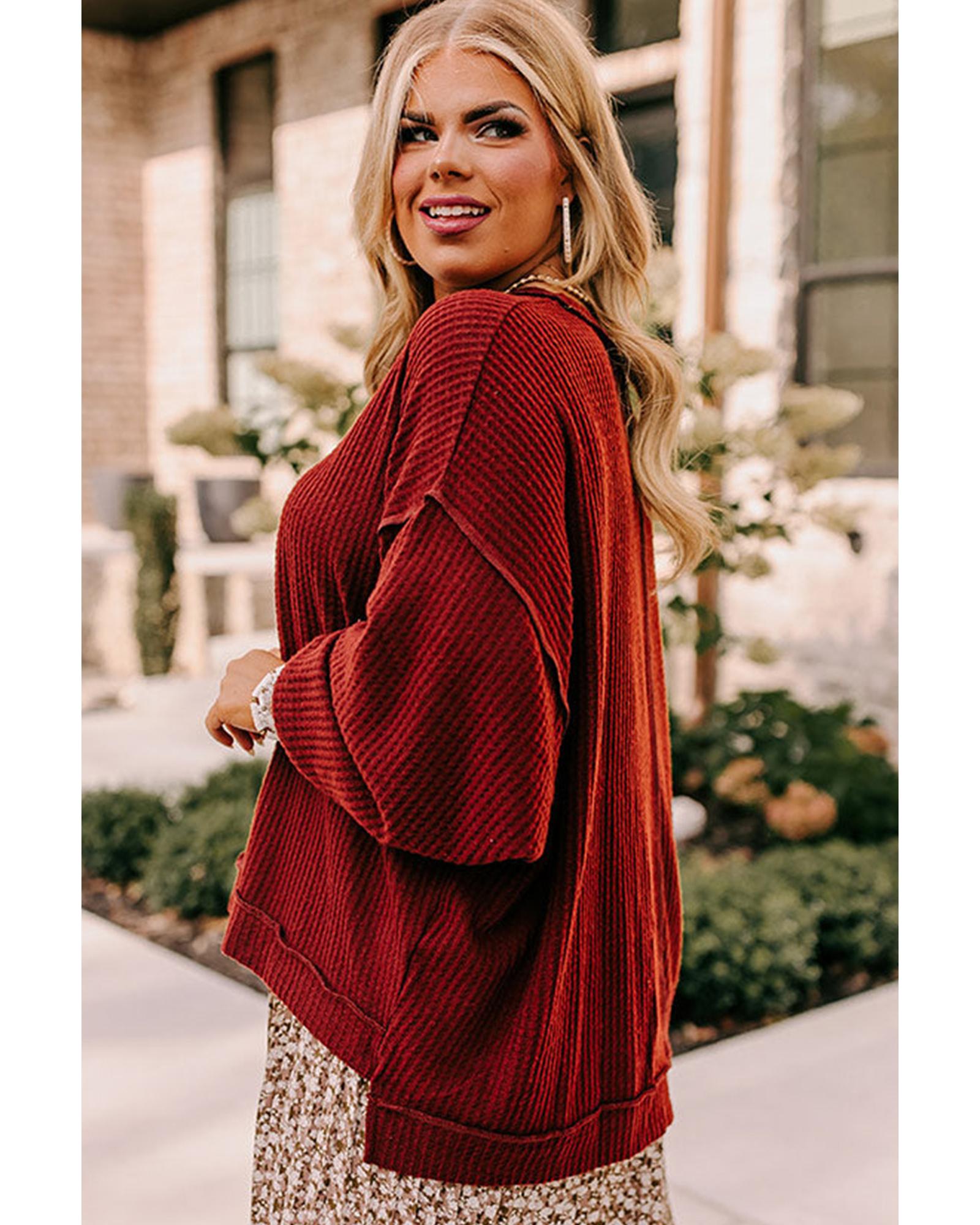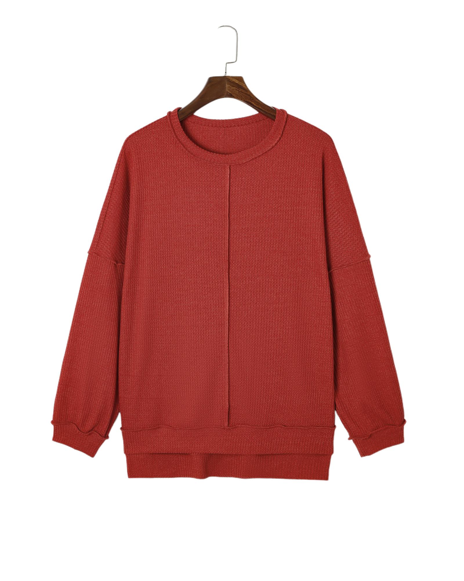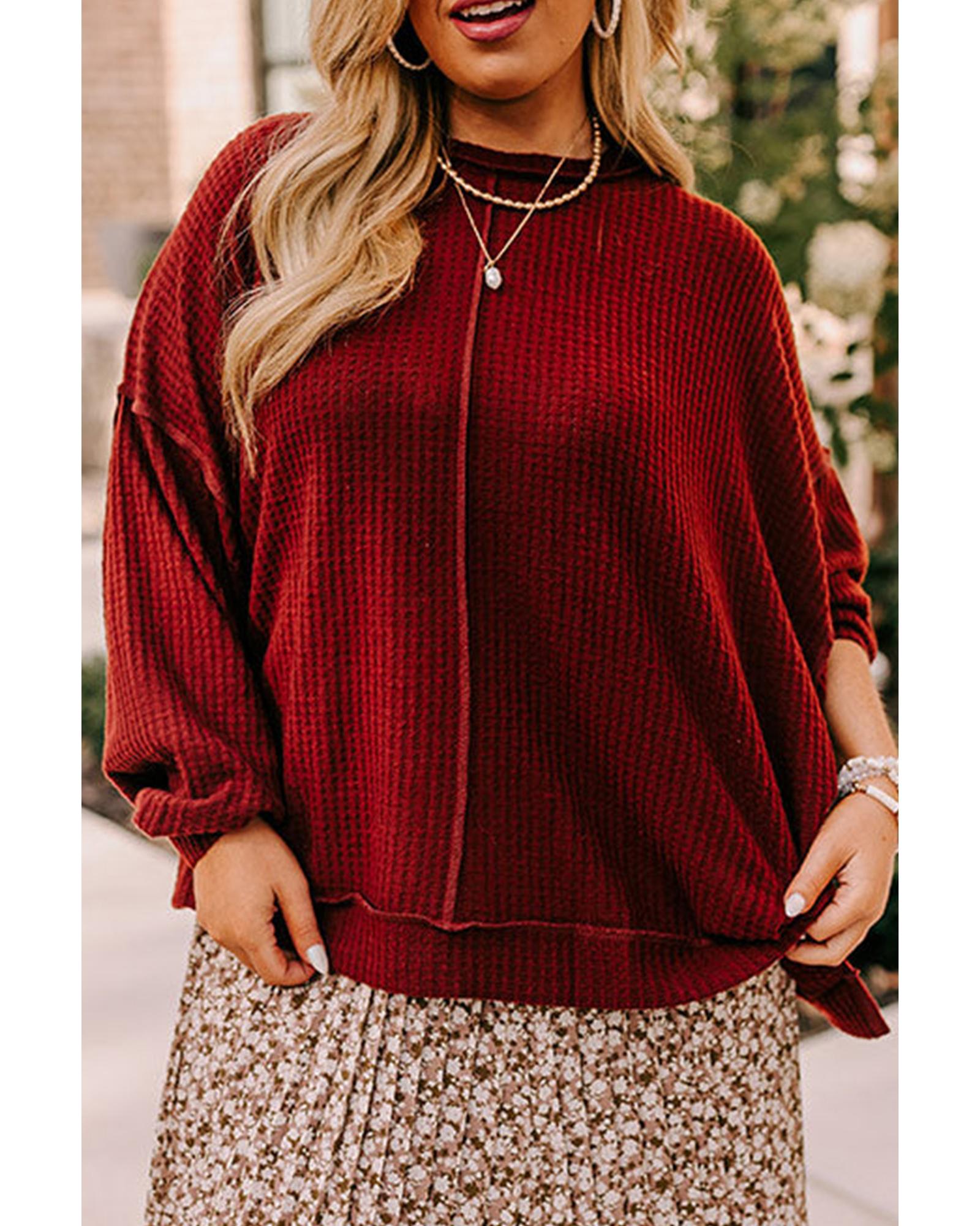 - Gold Flame Exposed Seam Detail Waffle Knit Plus Size Top