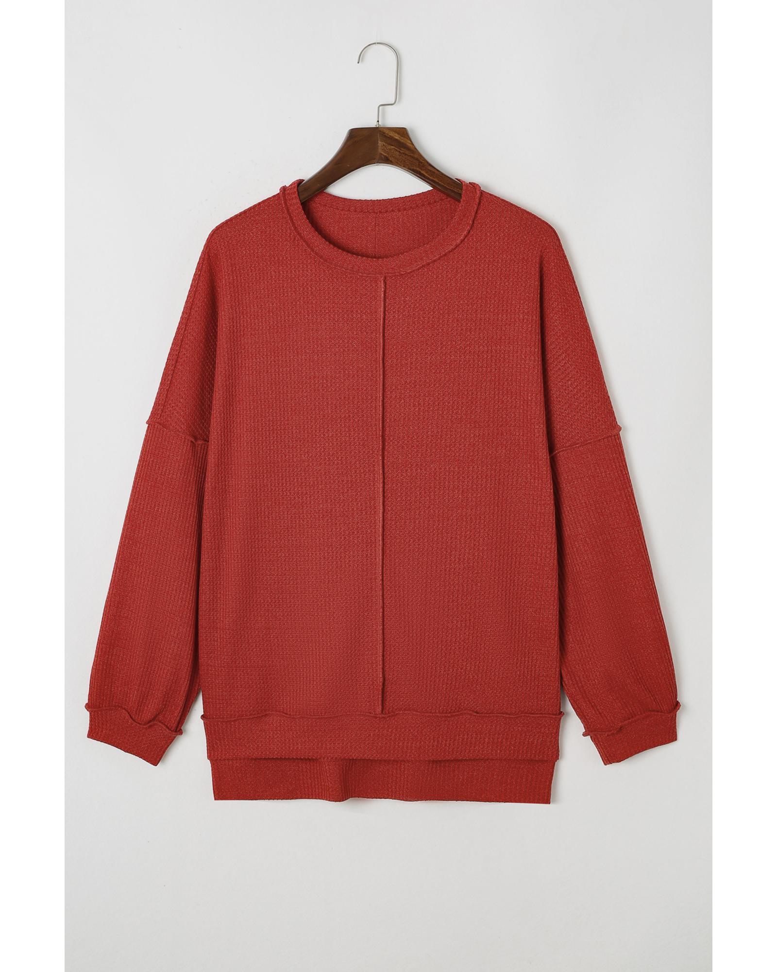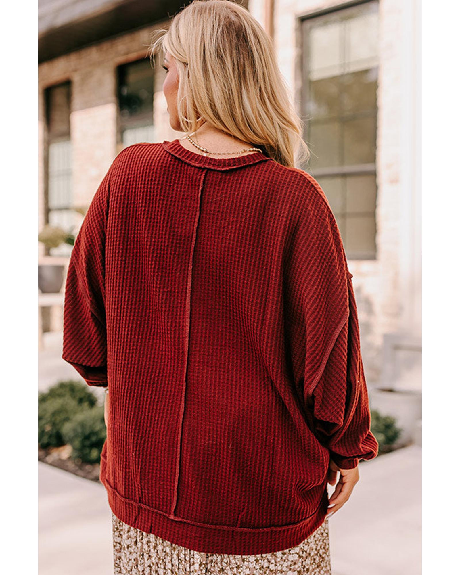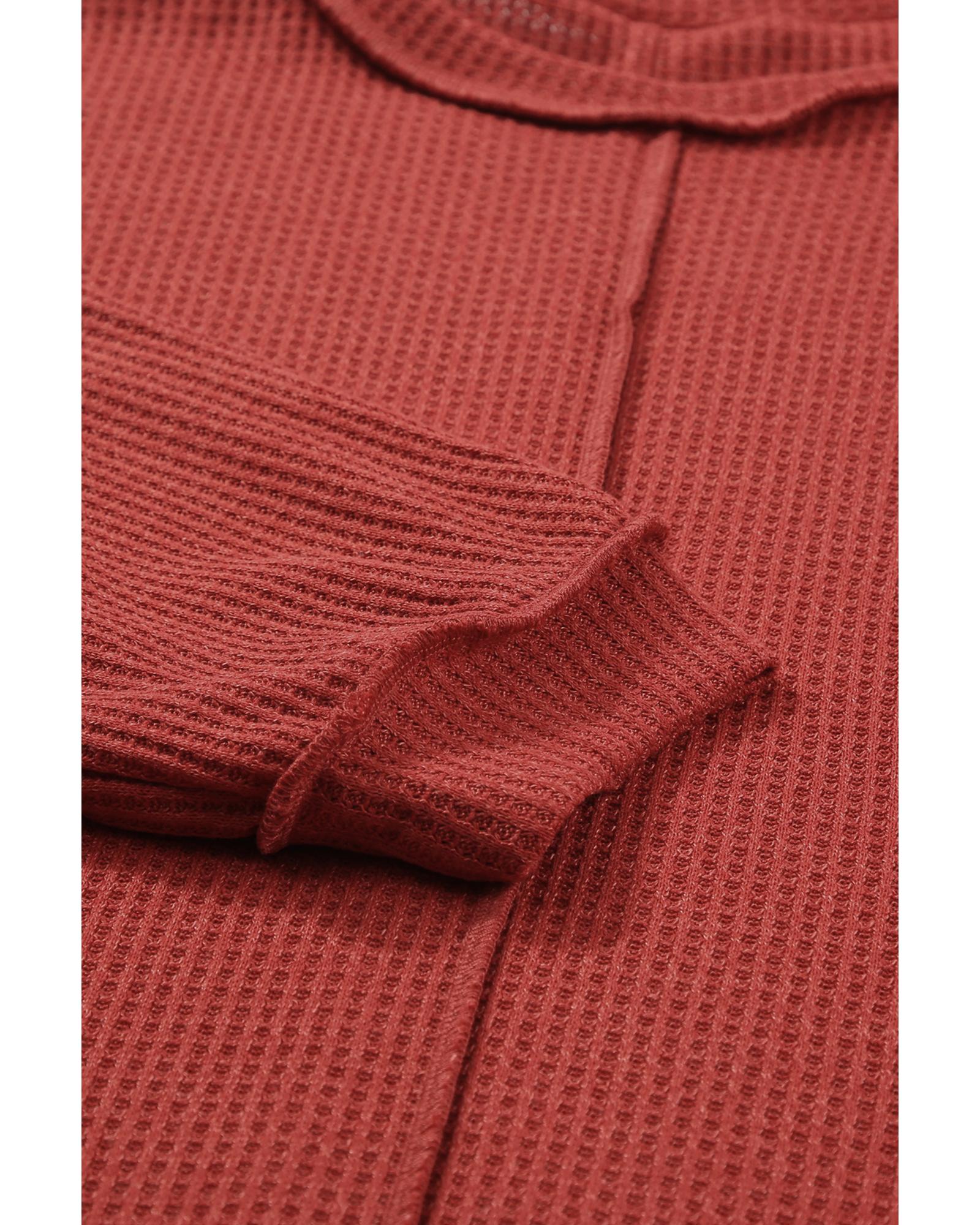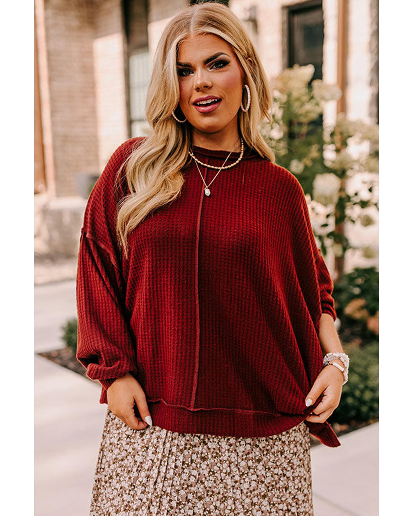 - Gold Flame Exposed Seam Detail Waffle Knit Plus Size Top