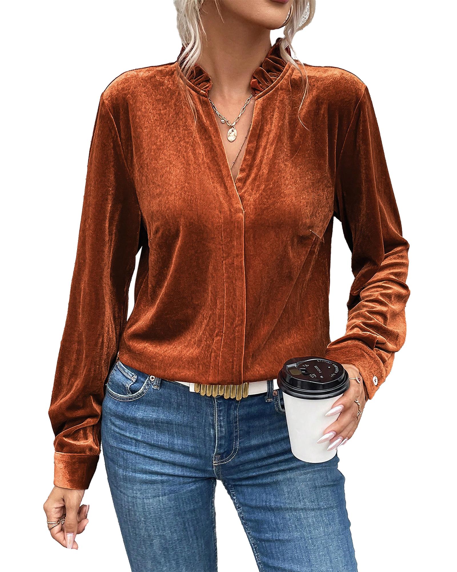 • Luxurious Gold Flame Frilled Collar Velvet Shirt