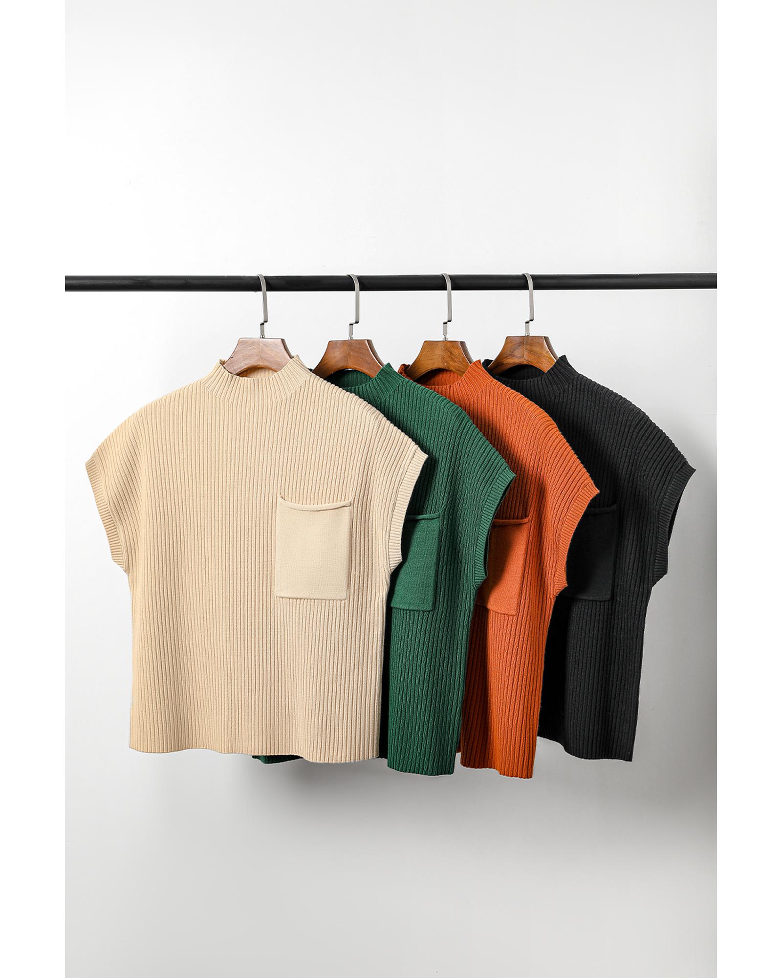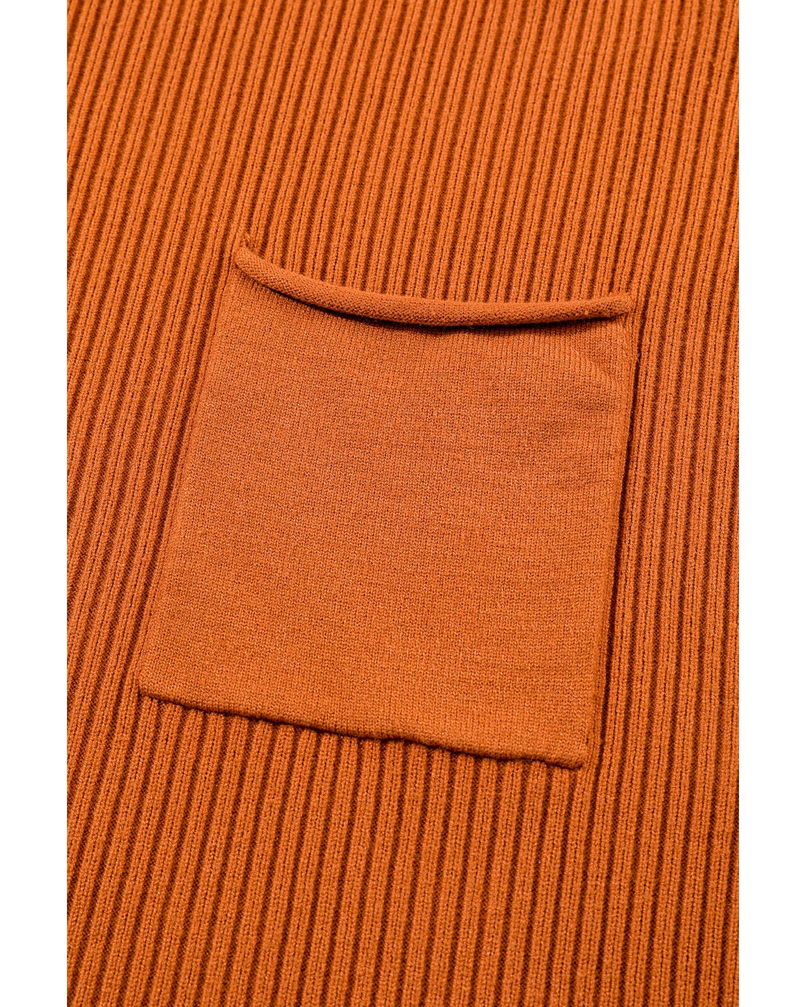 - Gold Flame Patch Pocket Ribbed Knit Short Sleeve Sweater