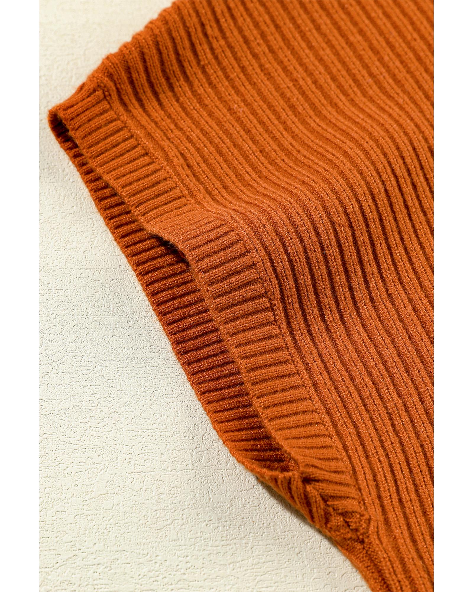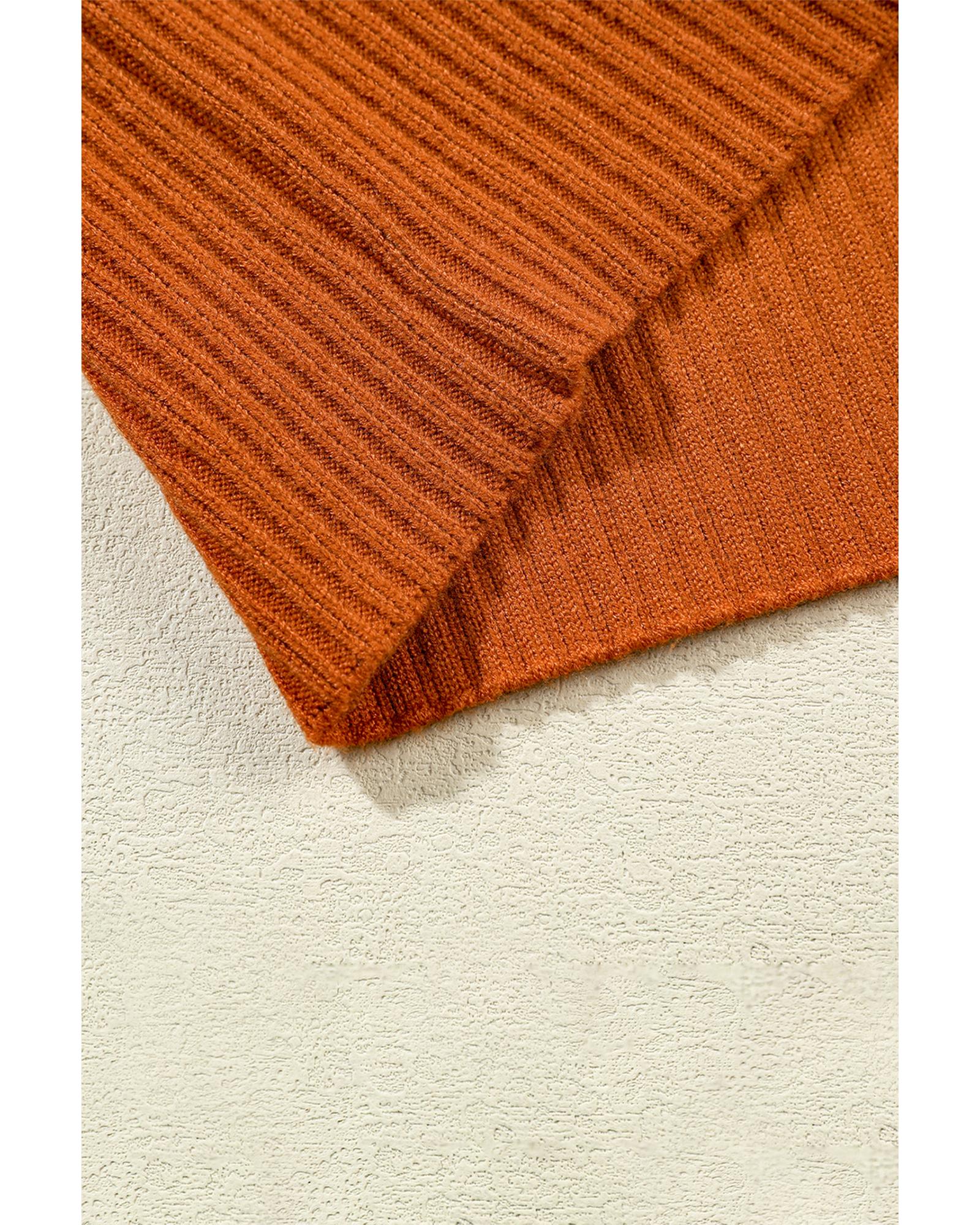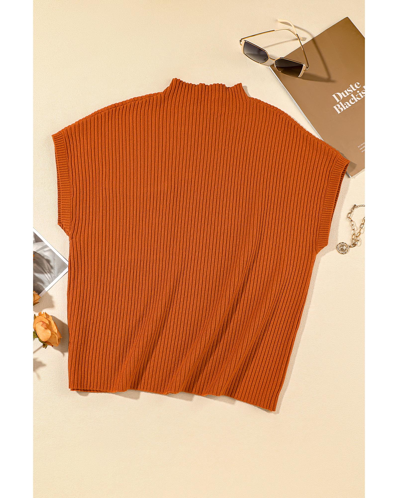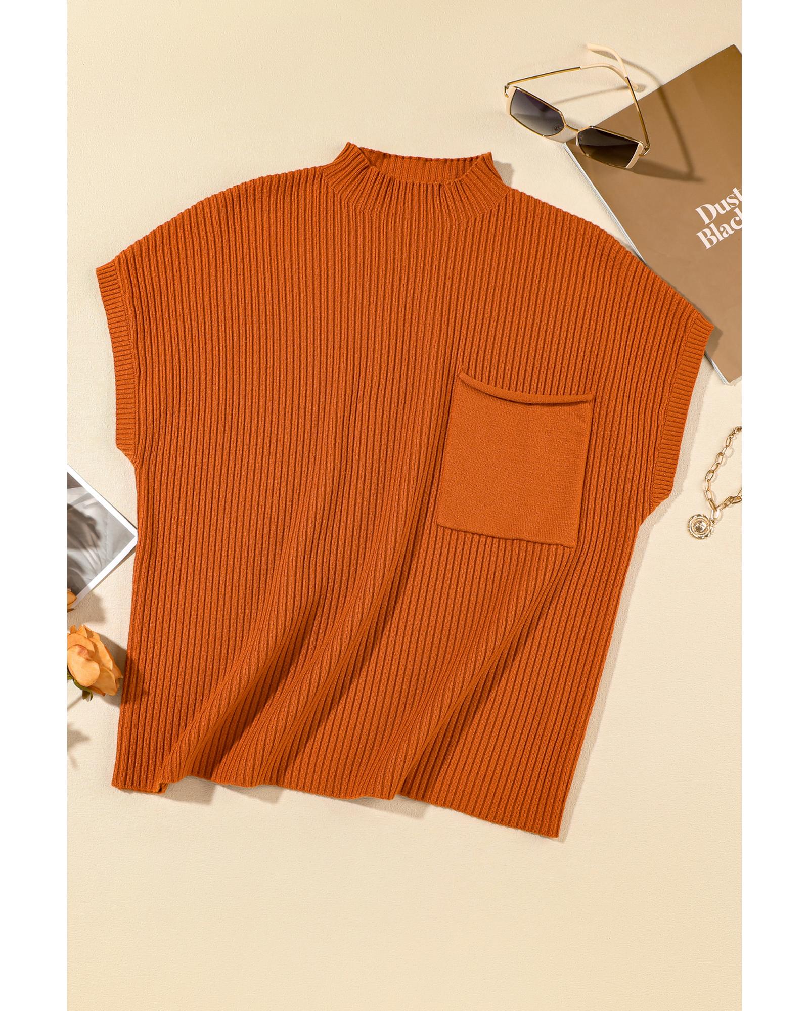 - Gold Flame Patch Pocket Ribbed Knit Short Sleeve Sweater