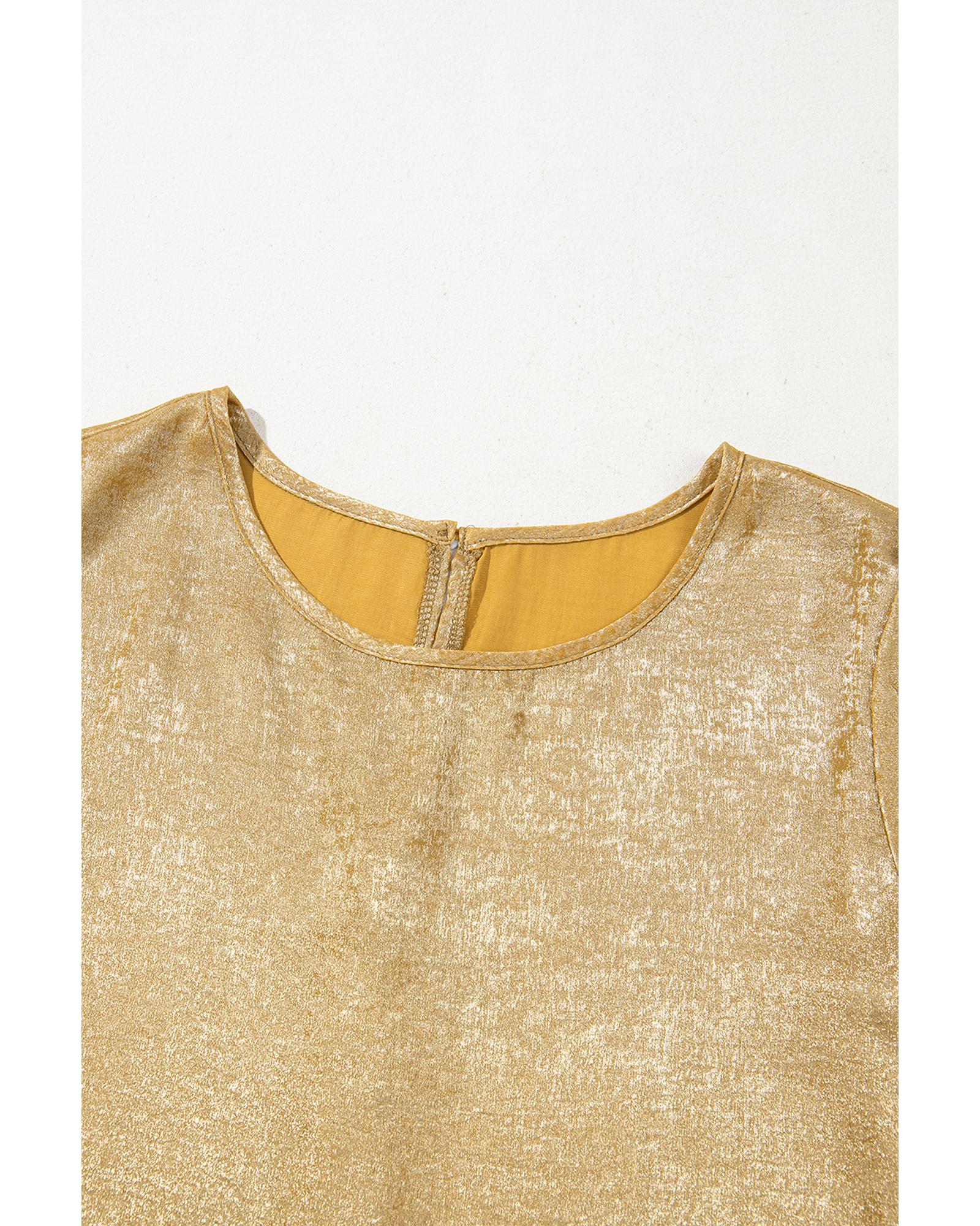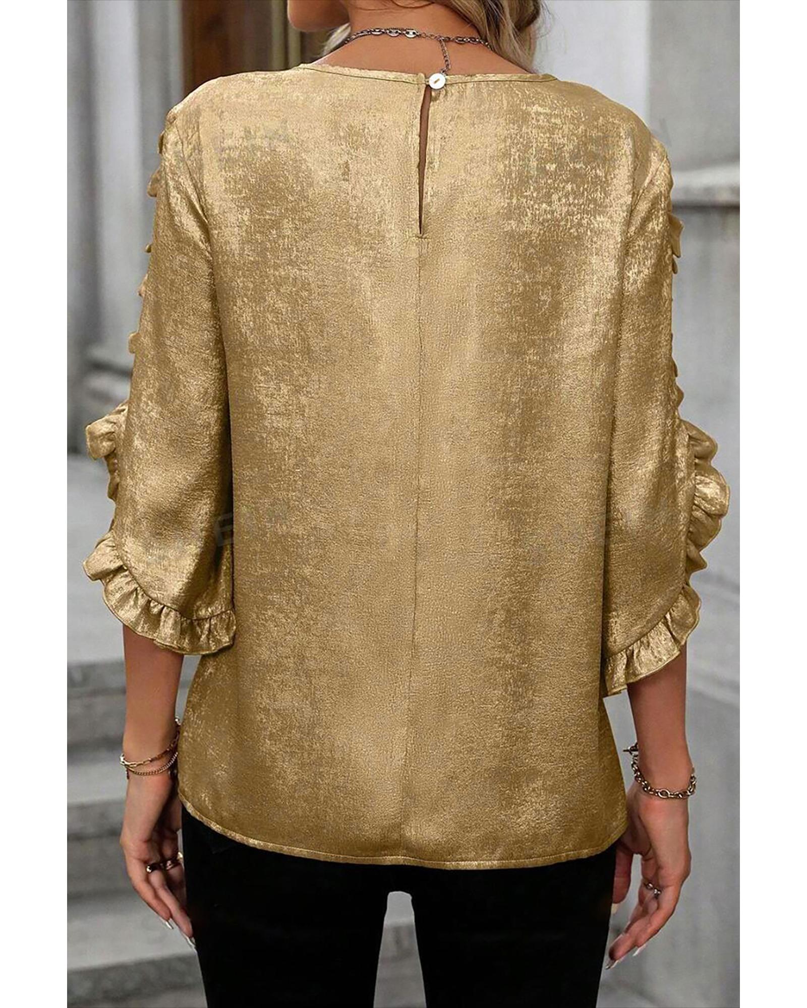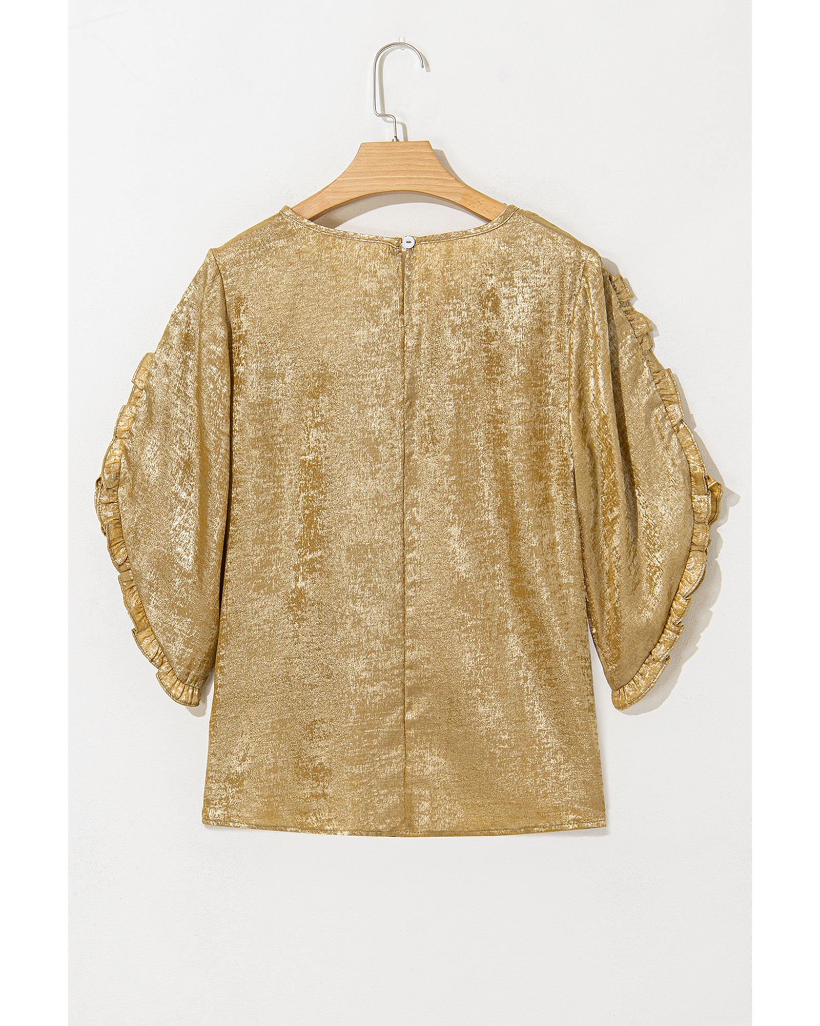 Gold Metallic Luster Frilled Half Sleeve Blouse – S