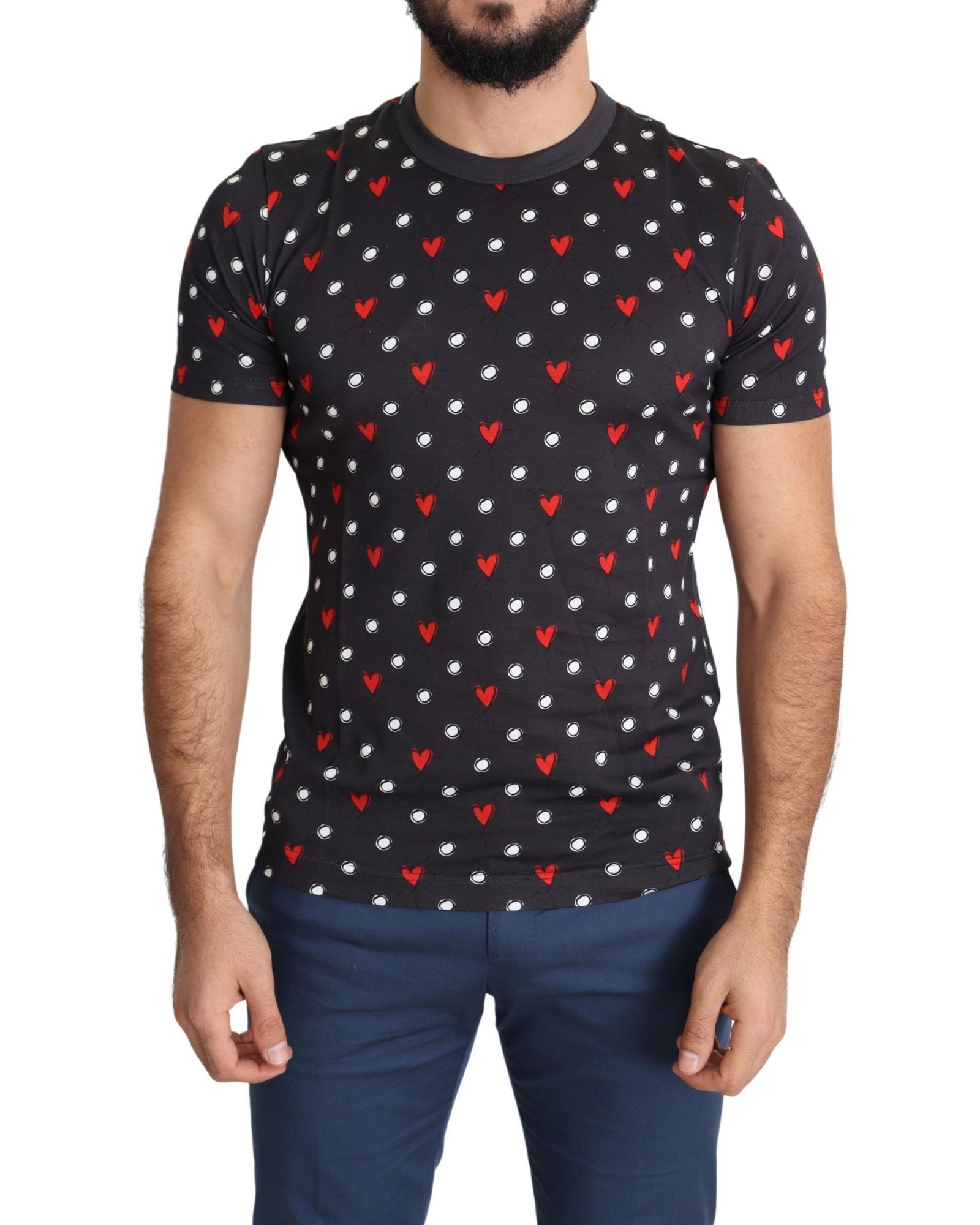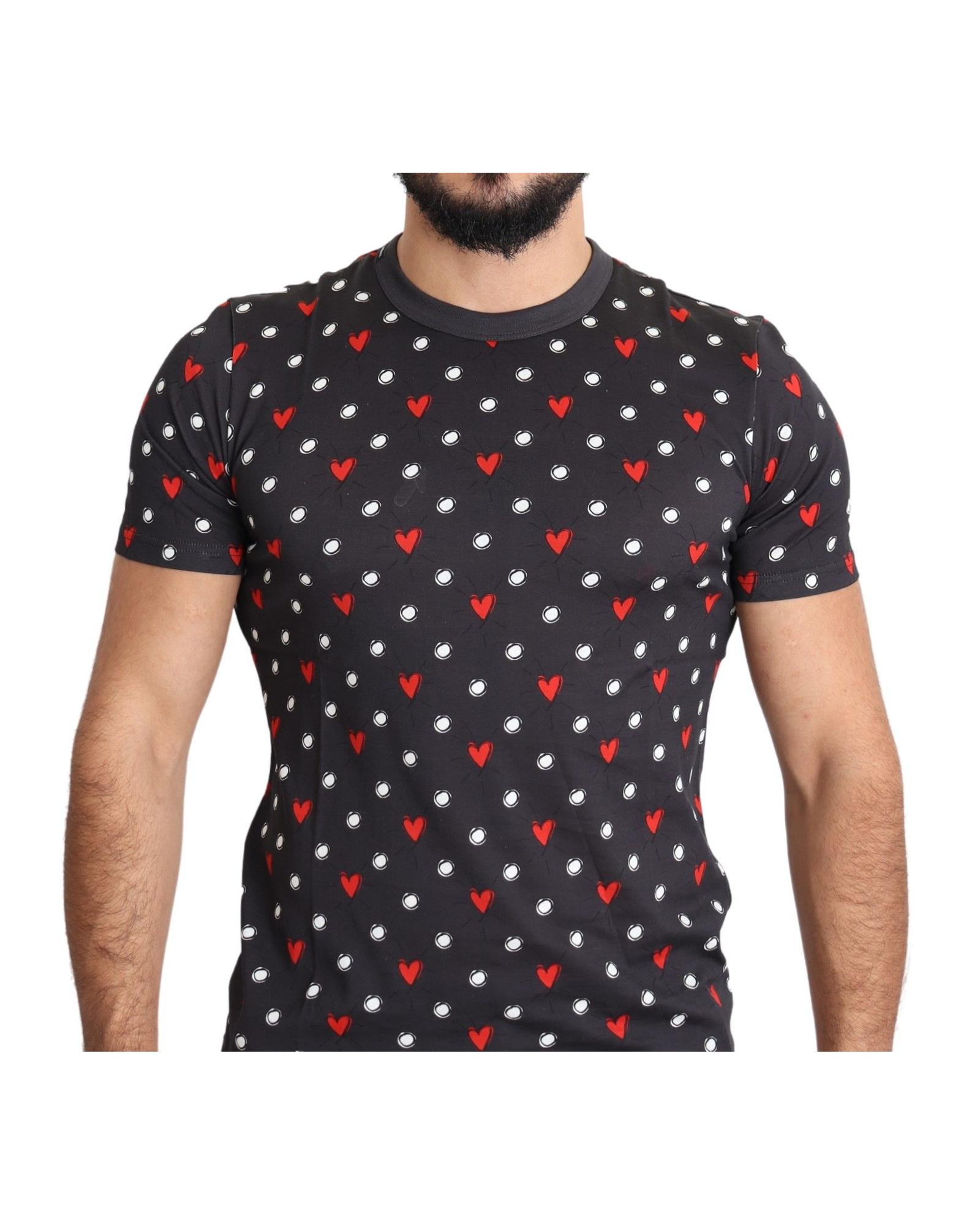 Gorgeous Dolce & Gabbana Dark Gray Hearts Print T-Shirt 48 IT Men