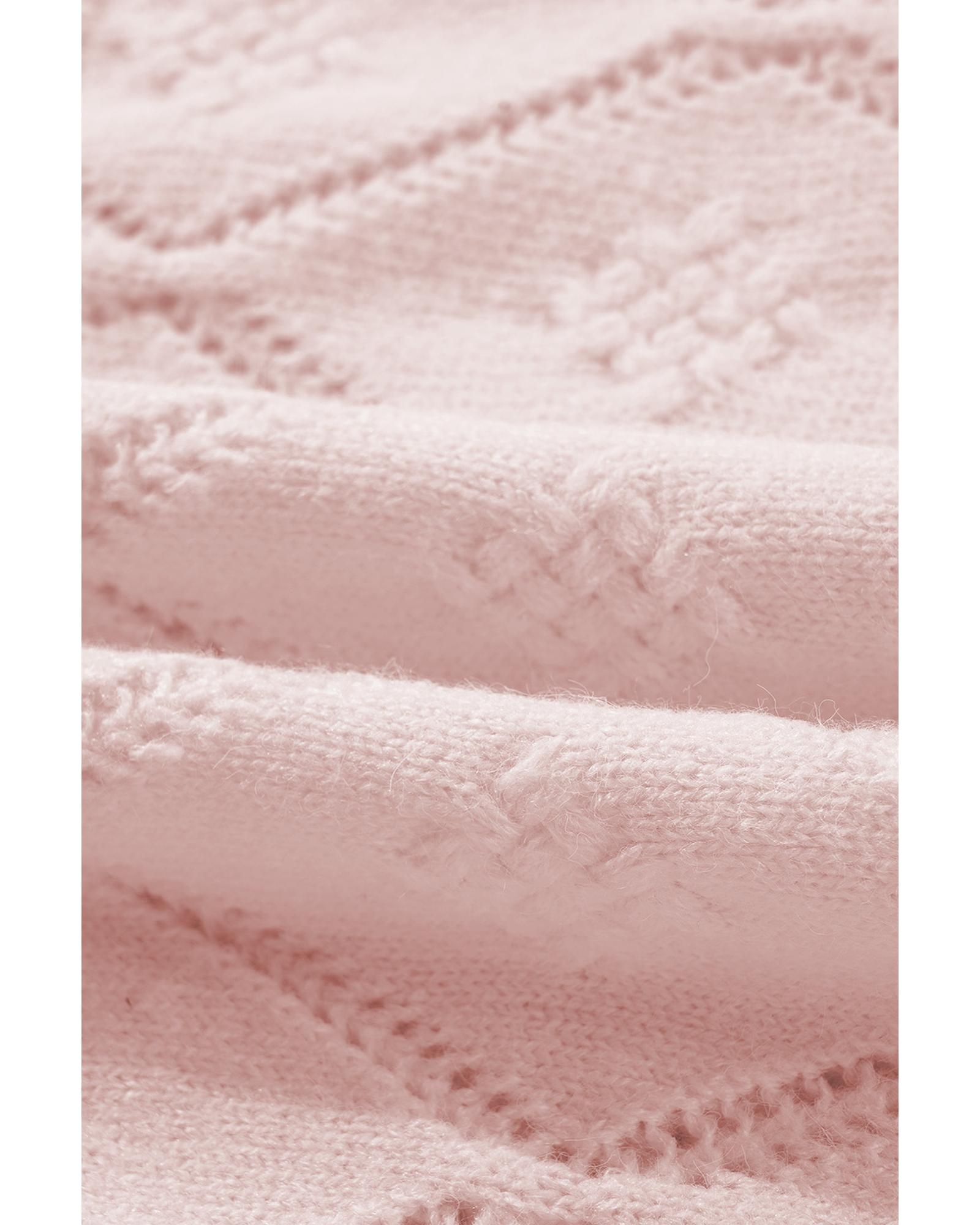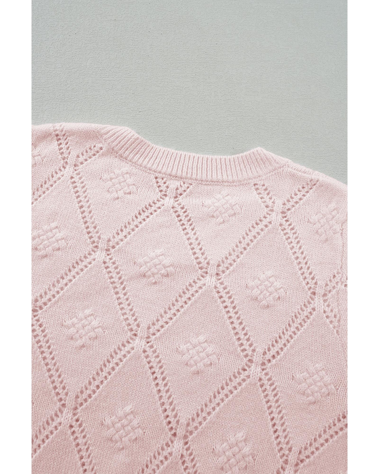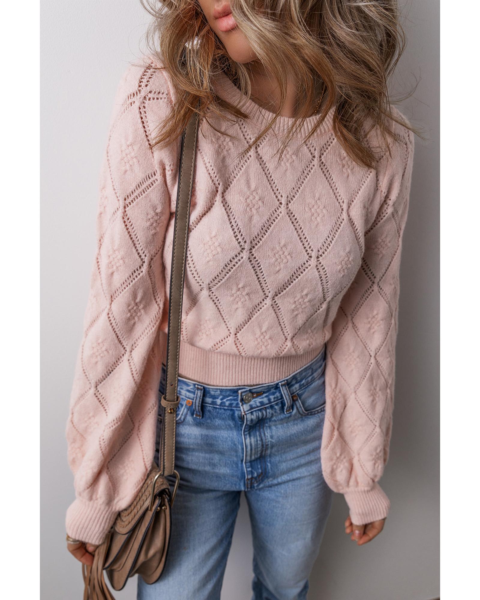 Gossamer Pink Openwork Plaid Puff Sleeve Cropped Sweater – XL