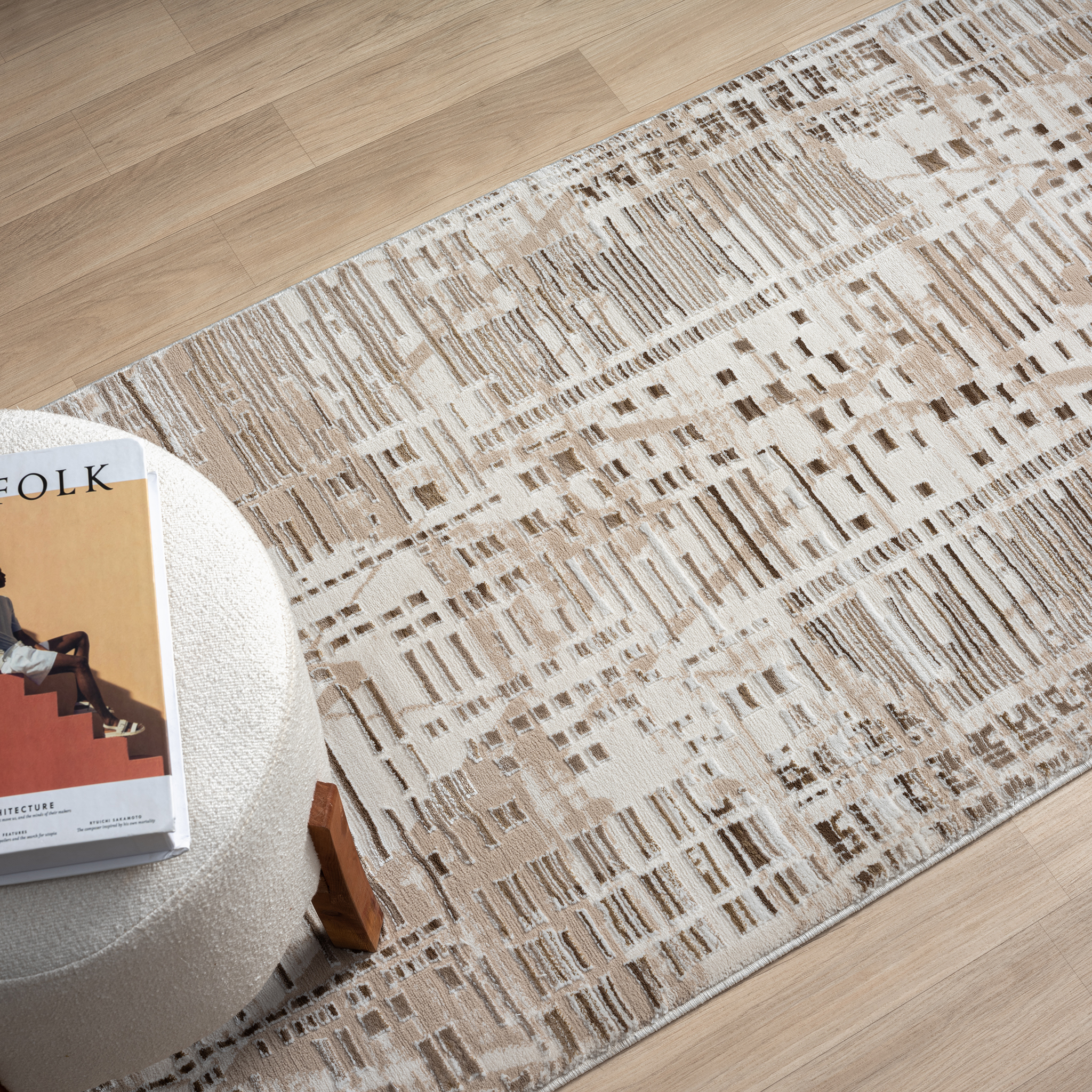 The simplistic yet compelling rugs from the Grande Collection effortlessly serve as the exemplar representation of modern decor. The meticulous construction of these pieces boasts durability and will provide natural charm into your decor space. Created to provide contemporary and transitional designs, Using versatile colorways featuring taupe, Ivory, sand and stone, the dynamic high-low finishes in each rug bring out the compelling patterns. The ultra-dense pile gives these pieces added durability with a soft touch. This collection showcases a 3D high-low textural effect. This rug is ideal for areas that do not get most of the traffic within the house.As a contemporary statement to your living room, this rug ties in a neutral color palette of gray and ivory tones with a subtle sheen. The highly decorative and beautifully textured pile is made from polyester and polypropylene, power-loomed into a soft cotton base and finished with quality all-side binding. This collection complements most interior color schemes with ease, and has shed-resistant and anti-static properties for easy maintenance.