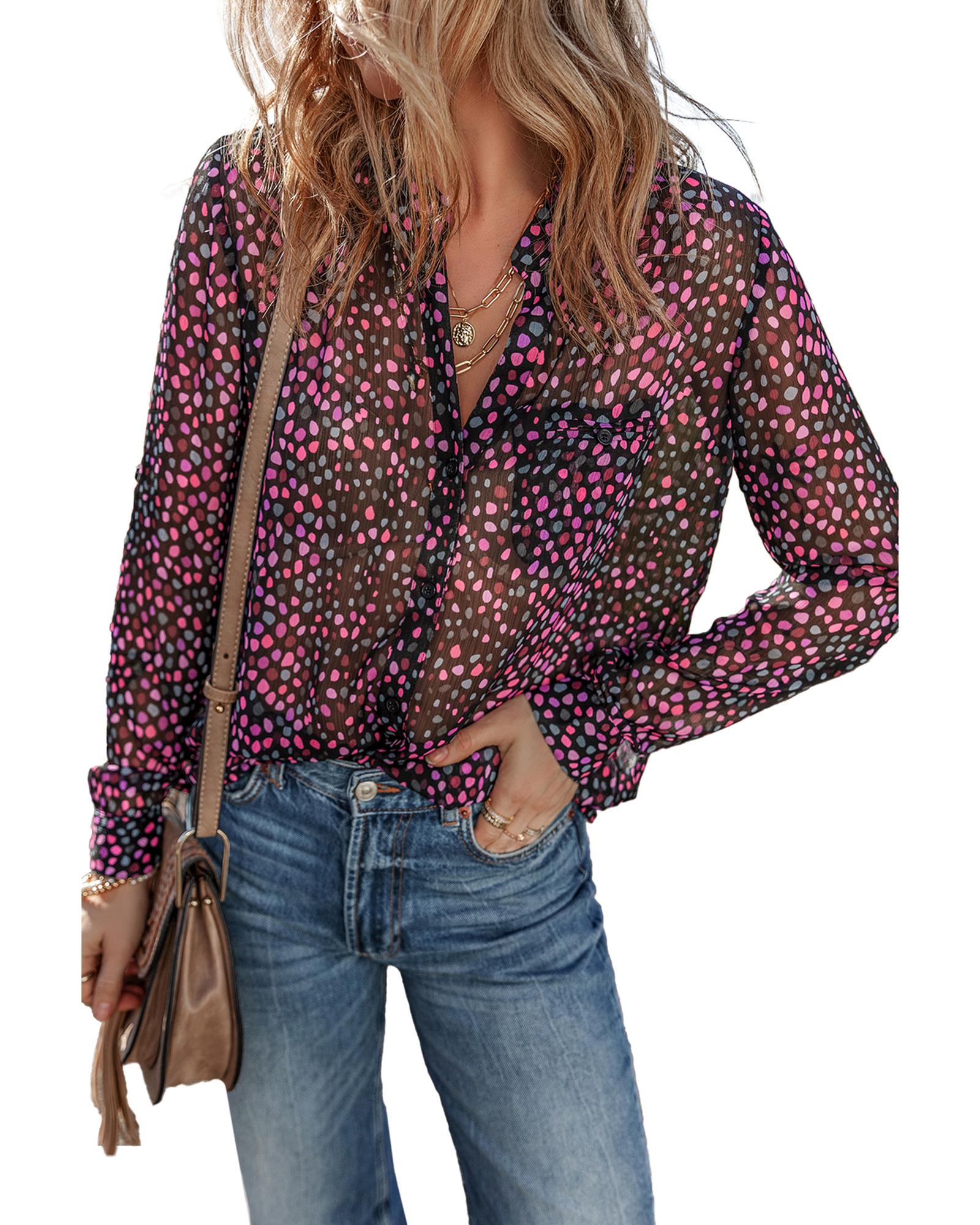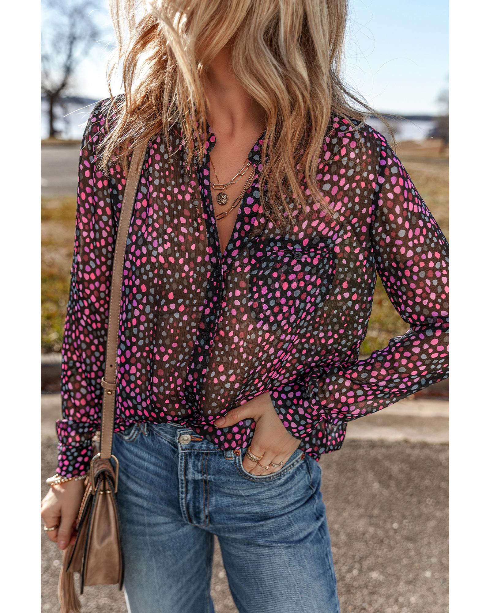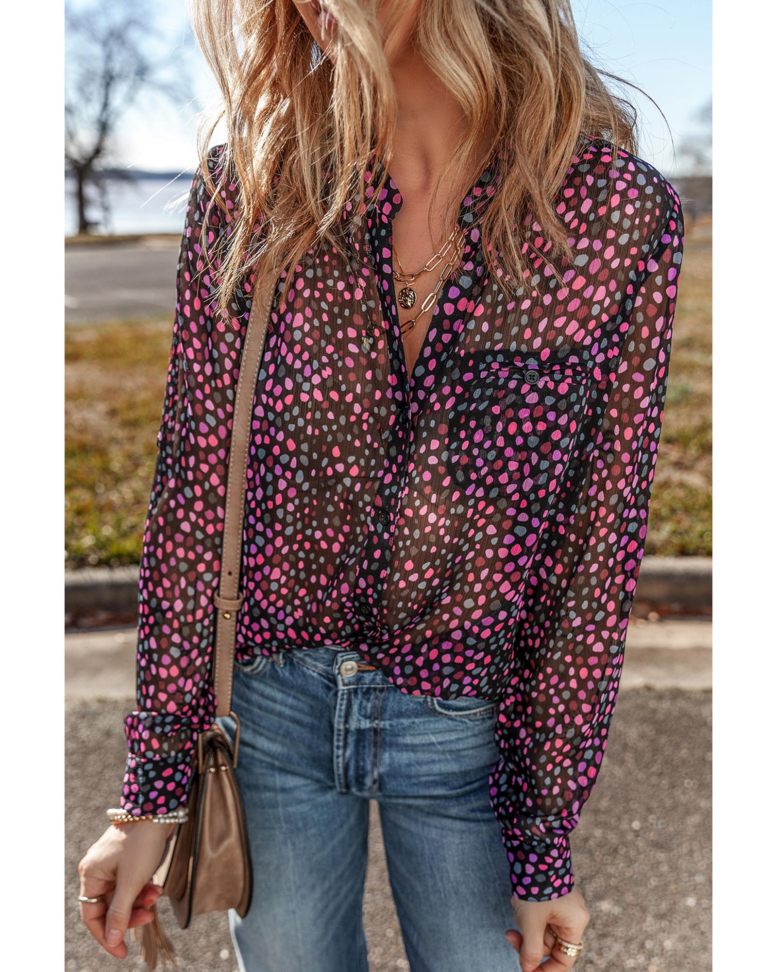 Grape Wine Polka Dot Printed Buttoned Casual Shirt – XL