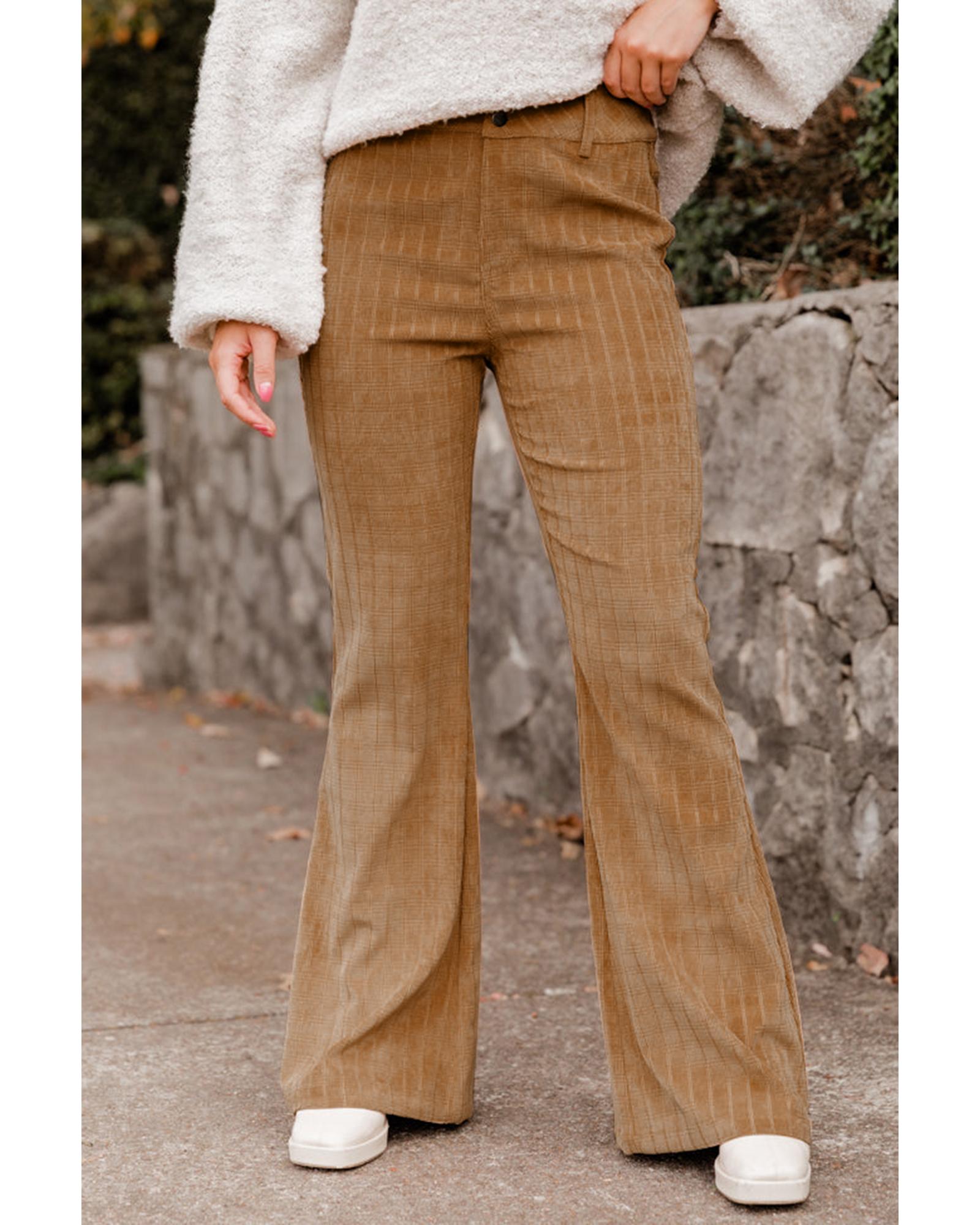 Grapefruit Orange Checkered Corduroy Flare High Waist Pants – L