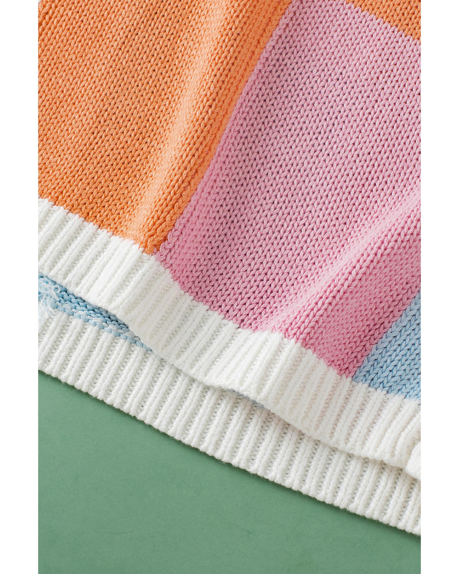 Grapefruit Orange Color Block Cap Sleeve Sweater – L