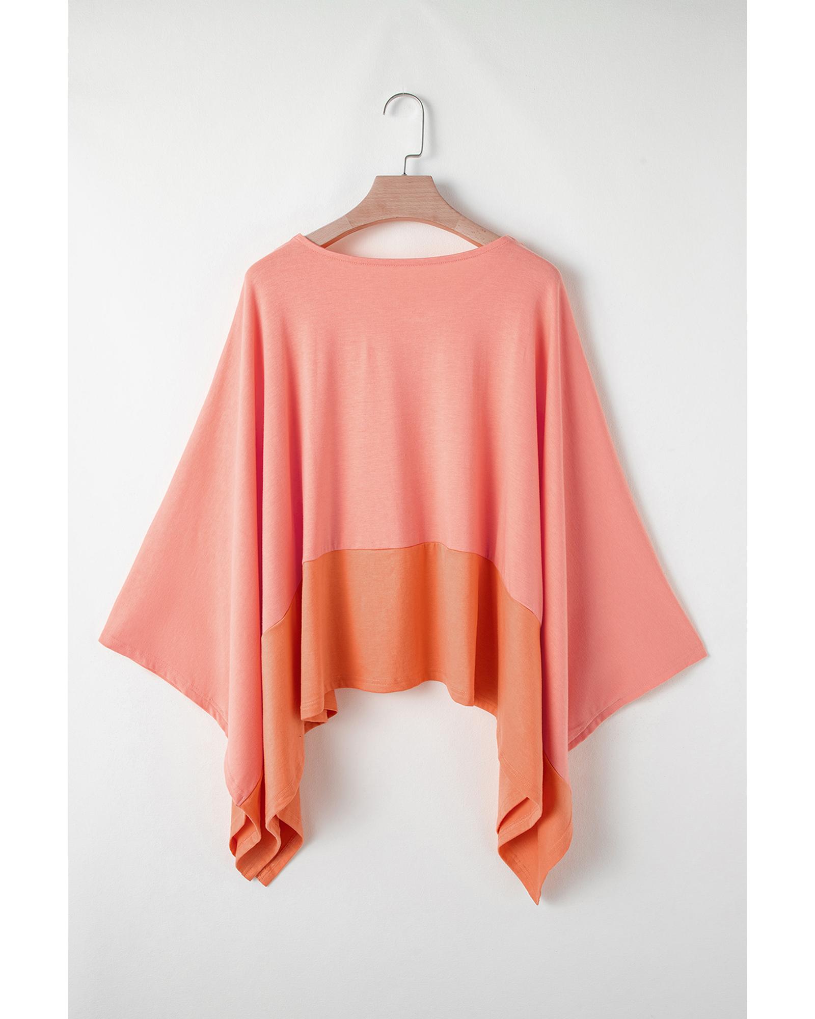 • Grapefruit Orange Contrast Color Patchwork Oversized Side Split Top
