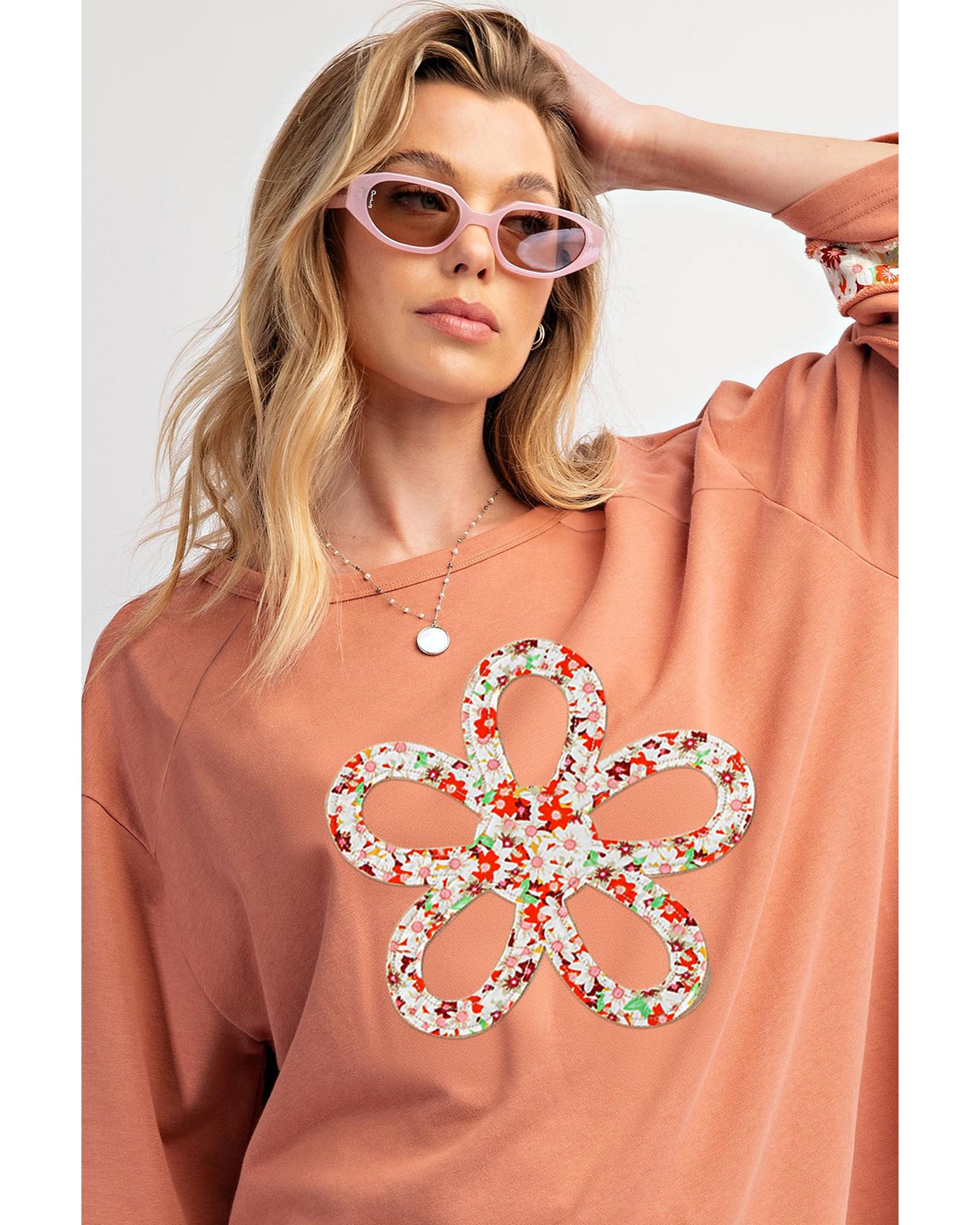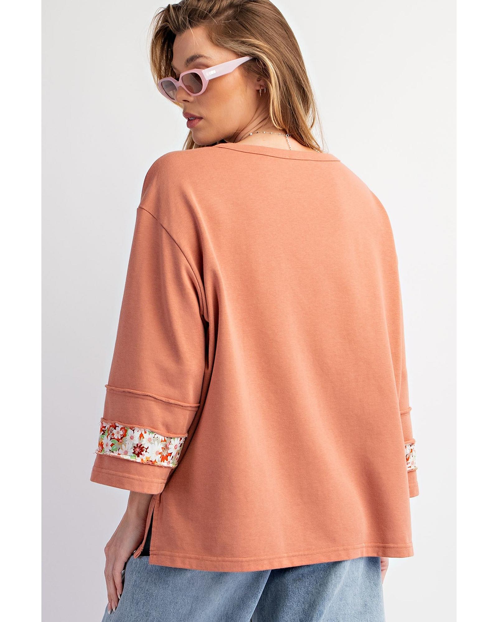 Grapefruit Orange Flower Patch Graphic Exposed Seam Wide Sleeve Top – M
