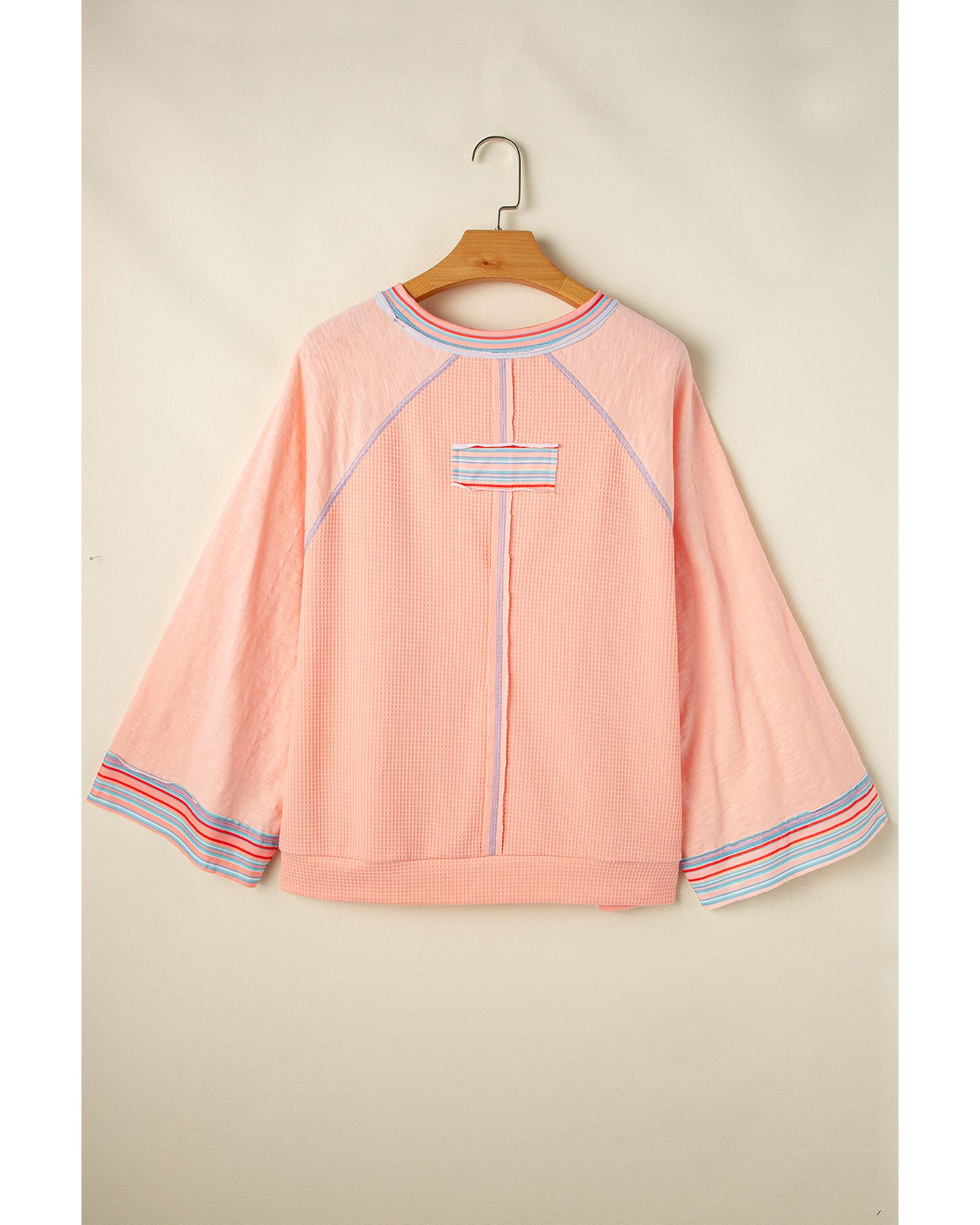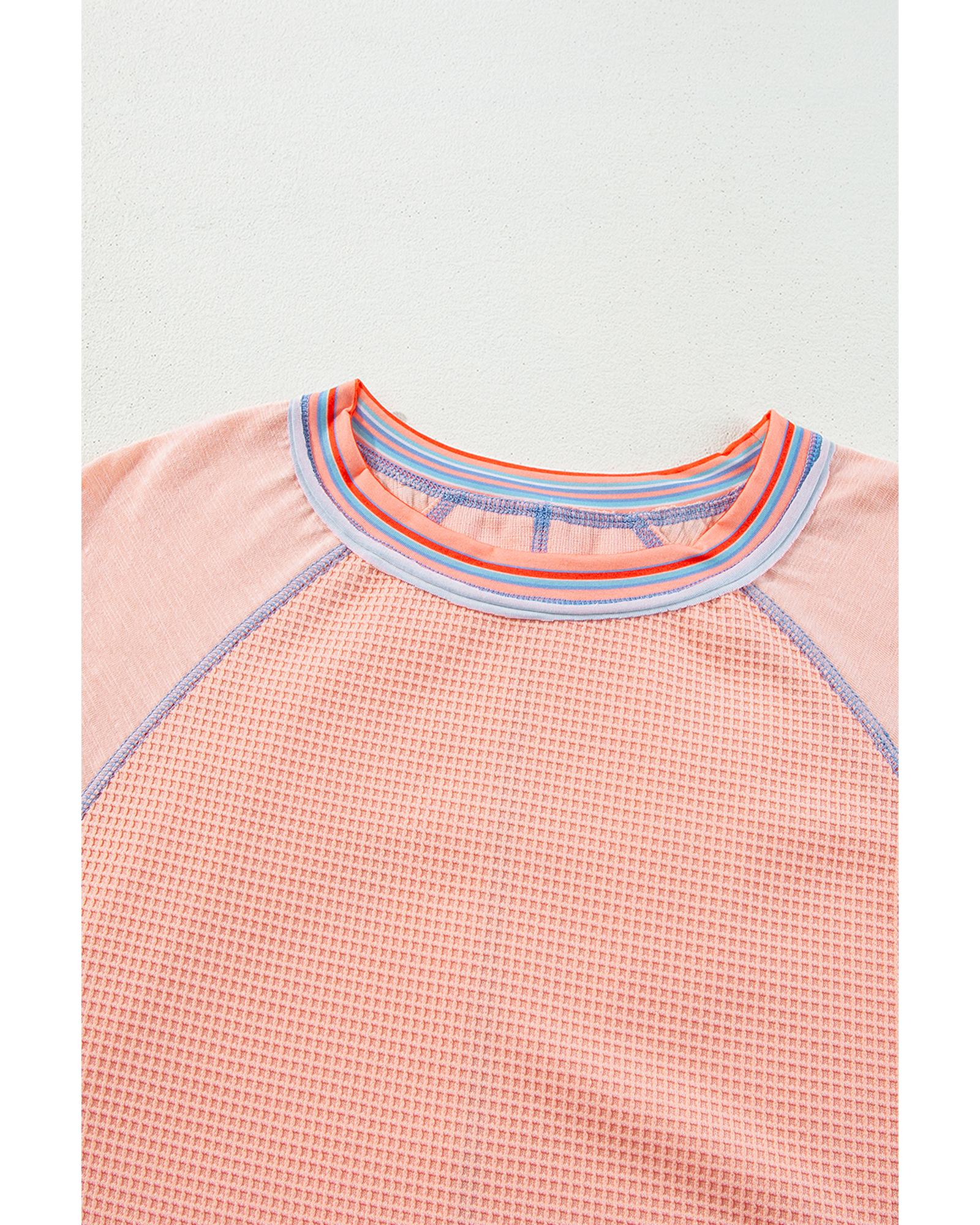 Grapefruit Orange Waffle Knit Wide Bracelet Sleeve Patchwork Raglan Top – XL
