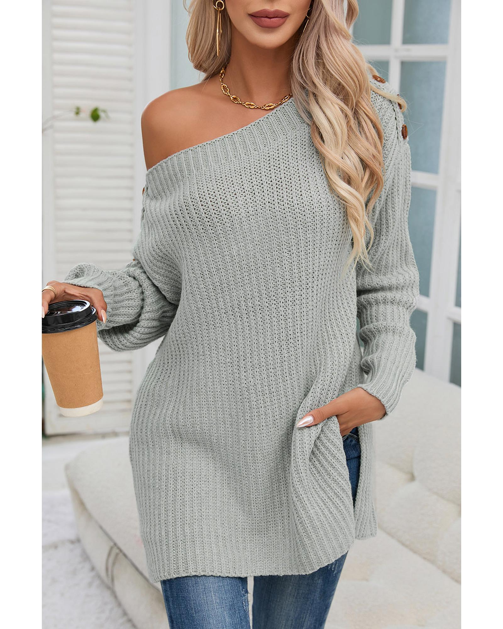 Gray Buttoned Drop Shoulder Oversized Sweater – M