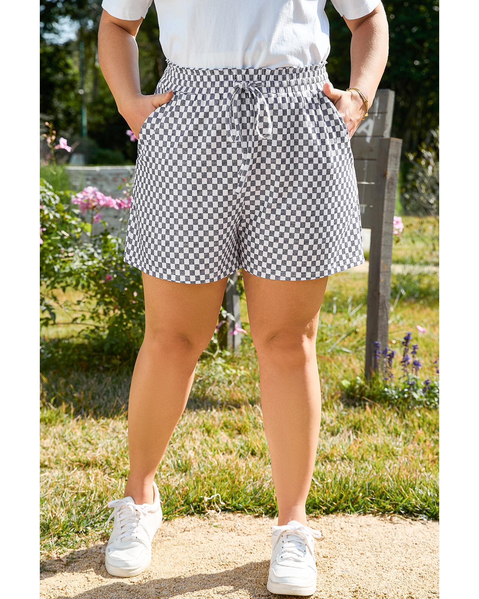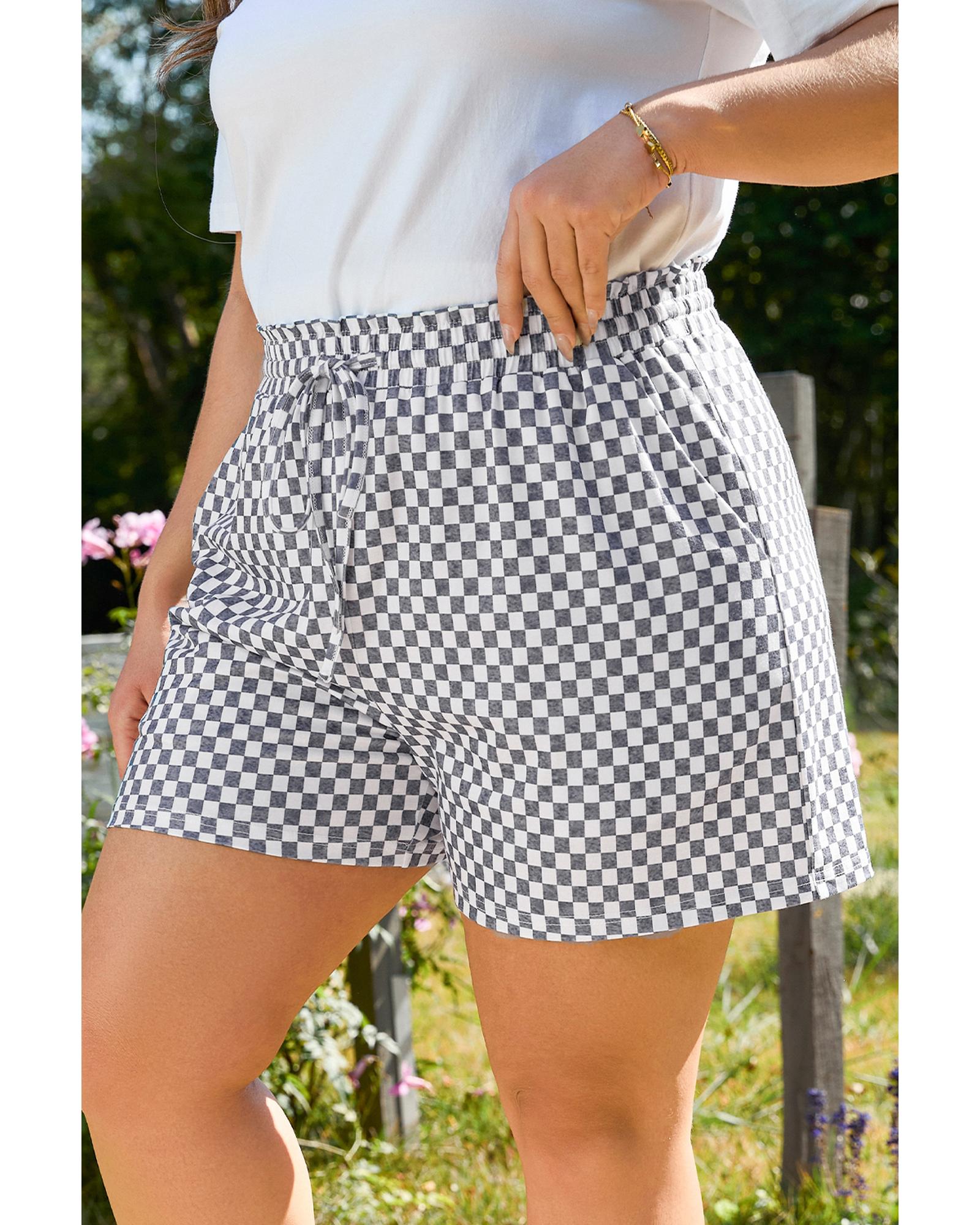Gray Checkerboard Lace-Up High Waist Plus Size Casual Shorts – 3X