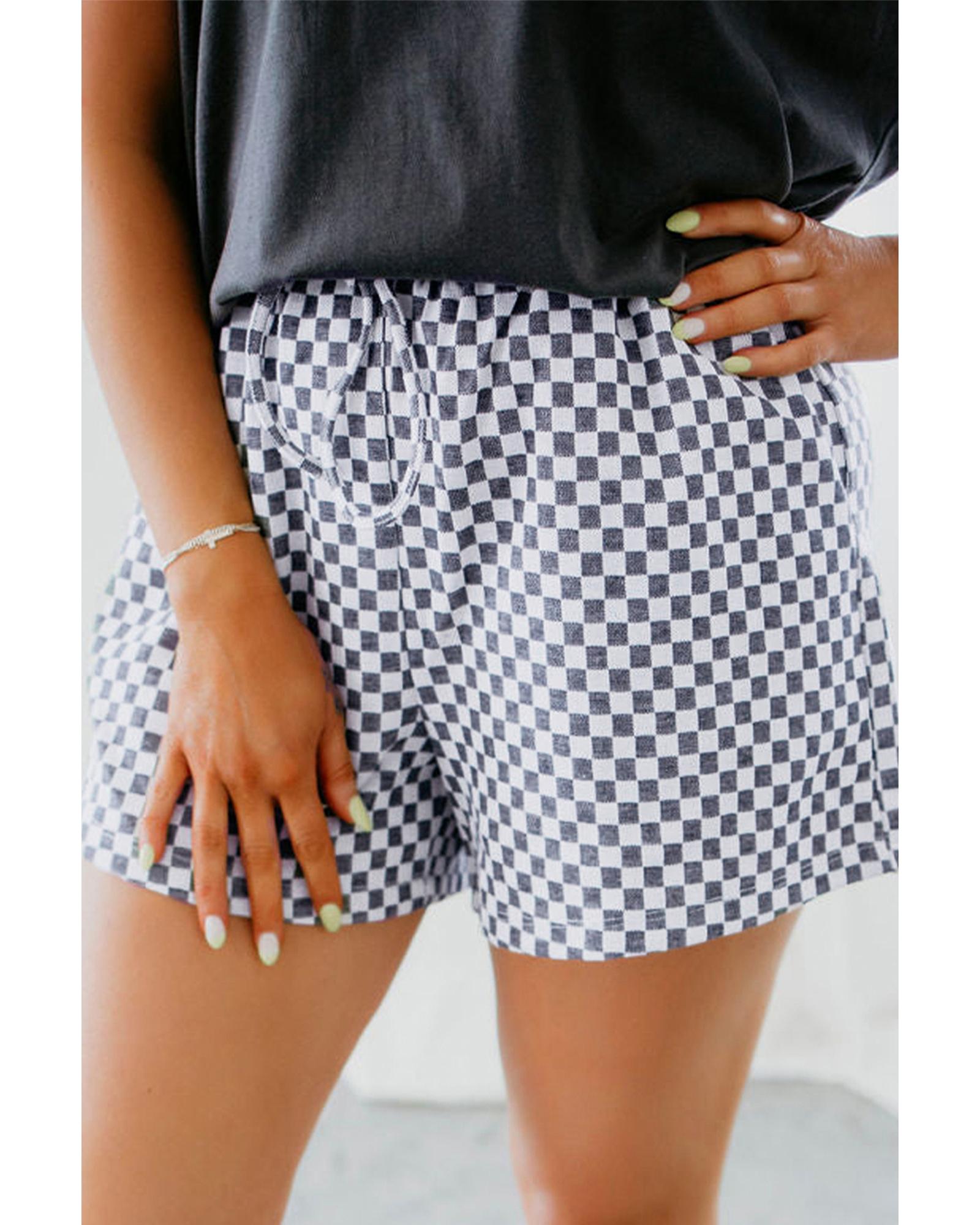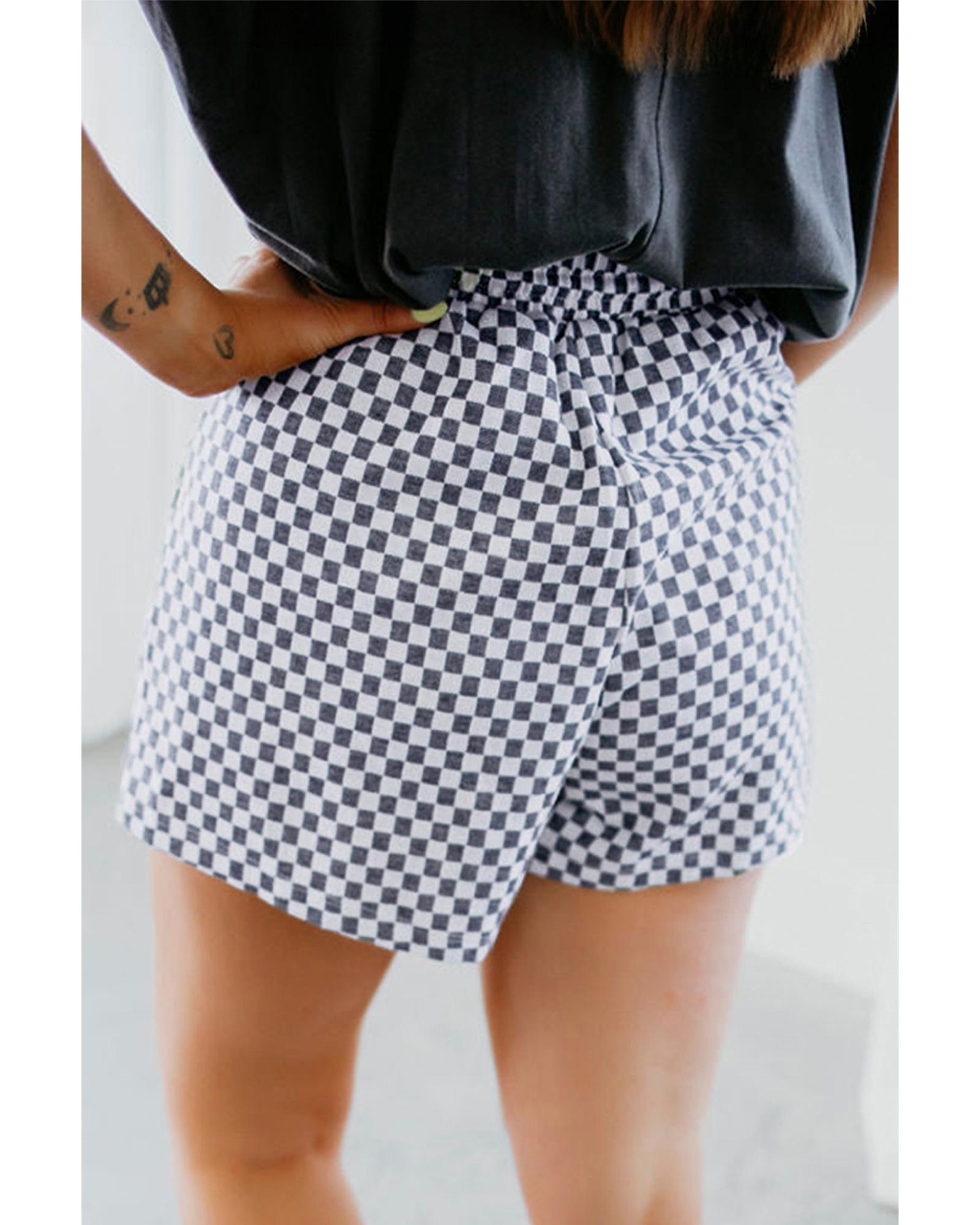 Gray Checkerboard Lace-Up High Waist Plus Size Casual Shorts – 4X