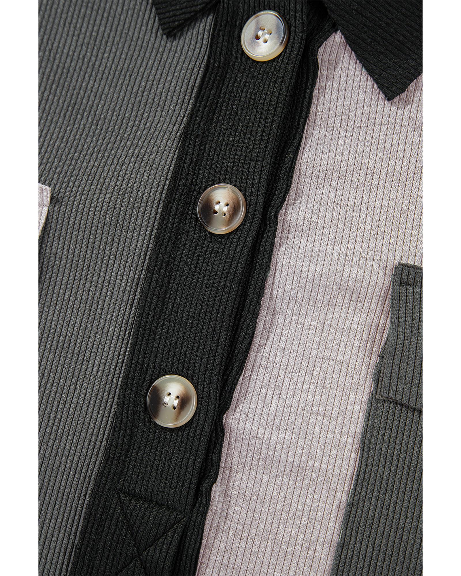 Gray Colorblock Ribbed Collared Oversized Sweatshirt – M