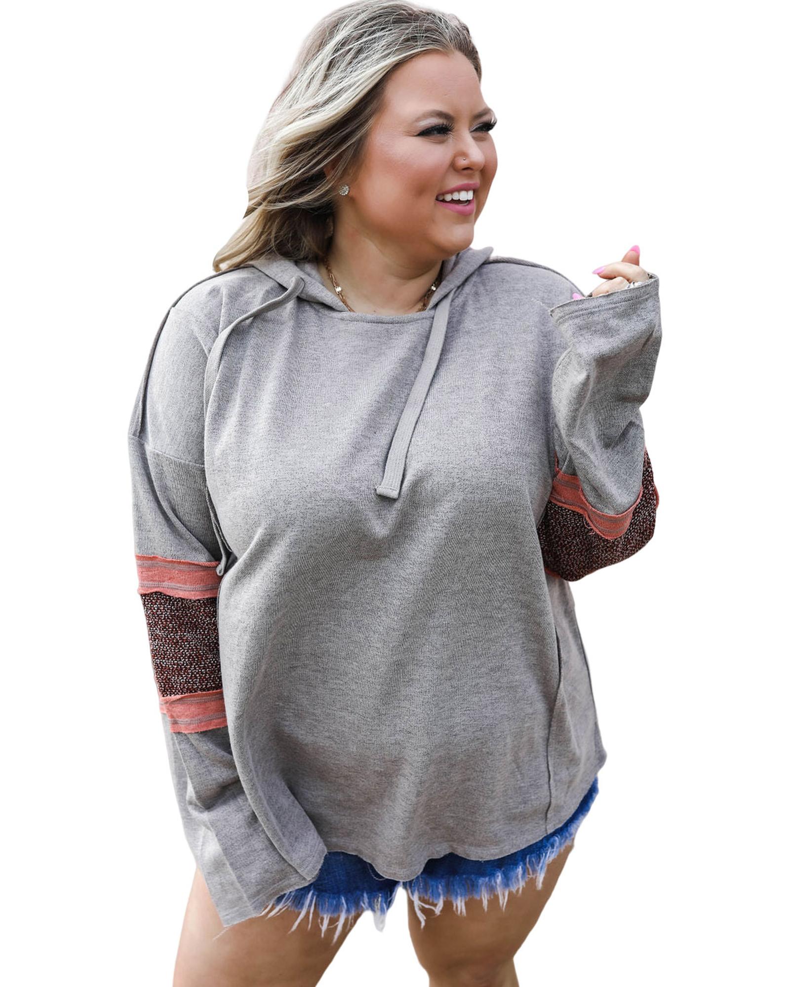 Gray Contrast Patched Sleeve Plus Size Hoodie – 3X