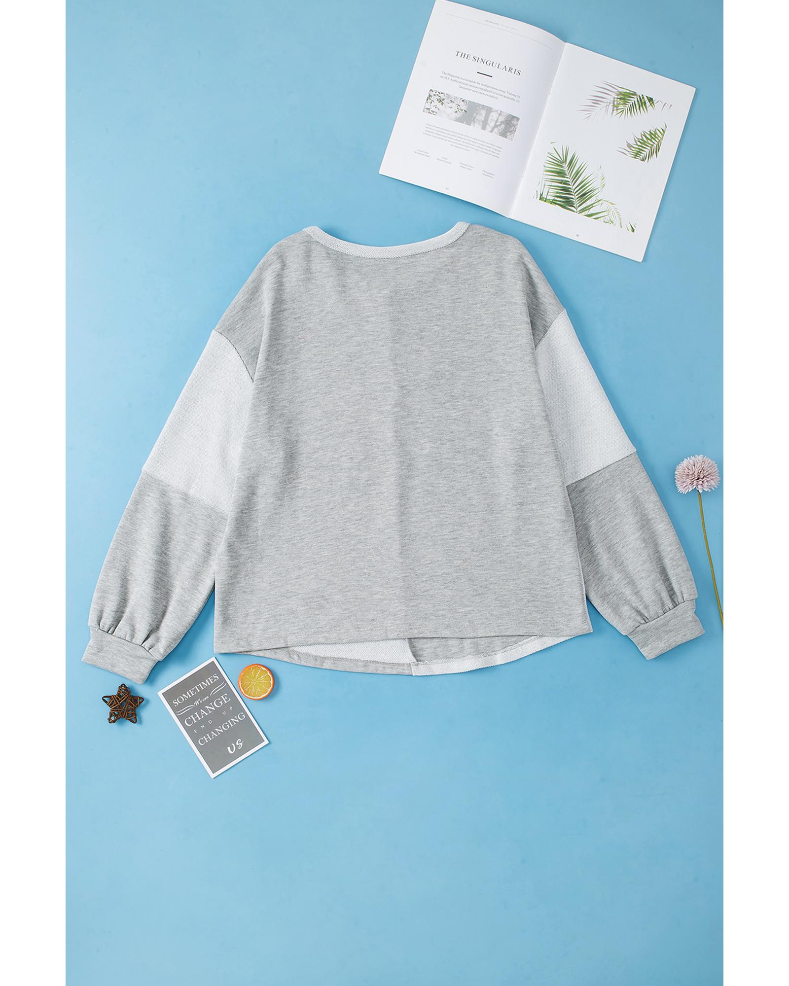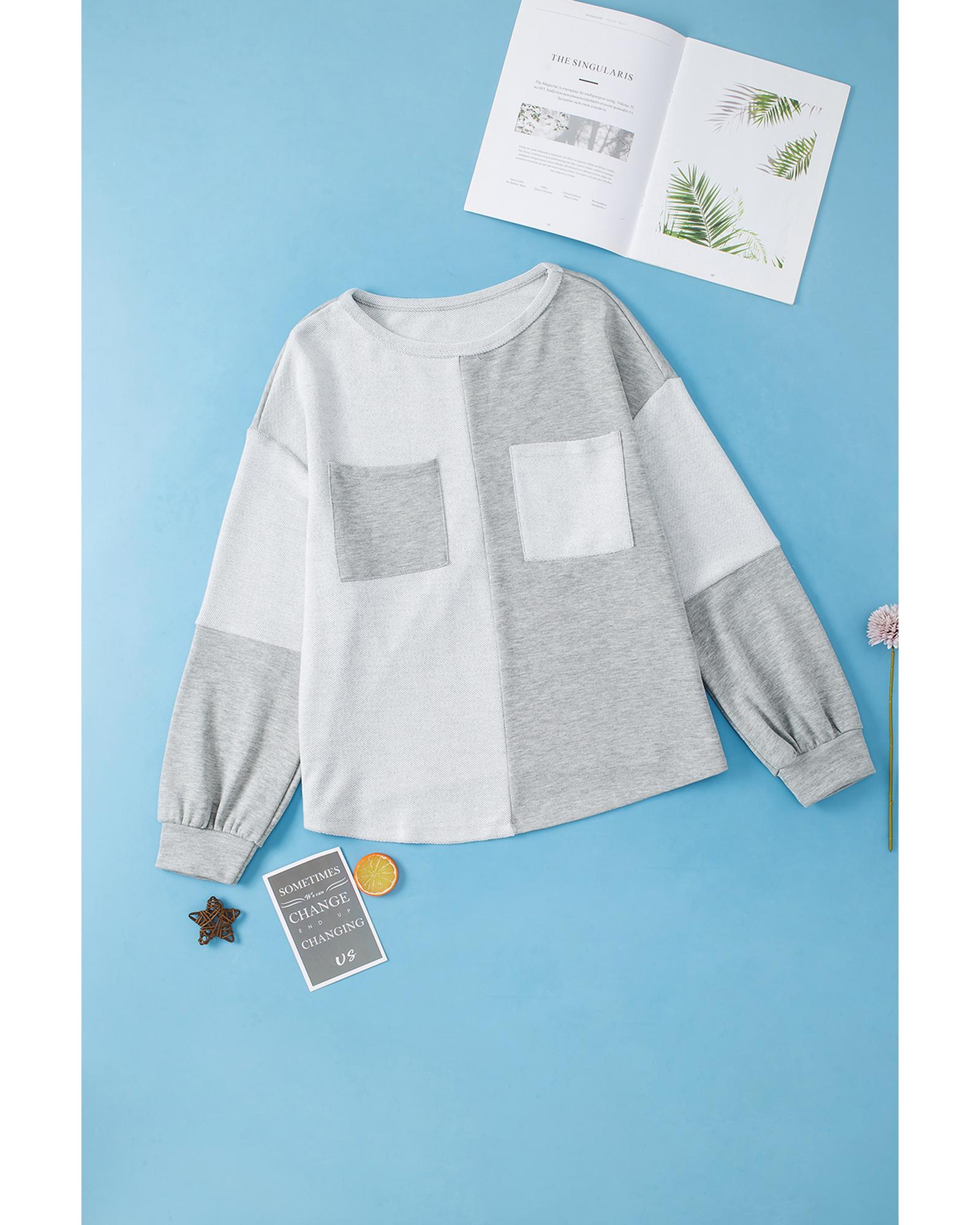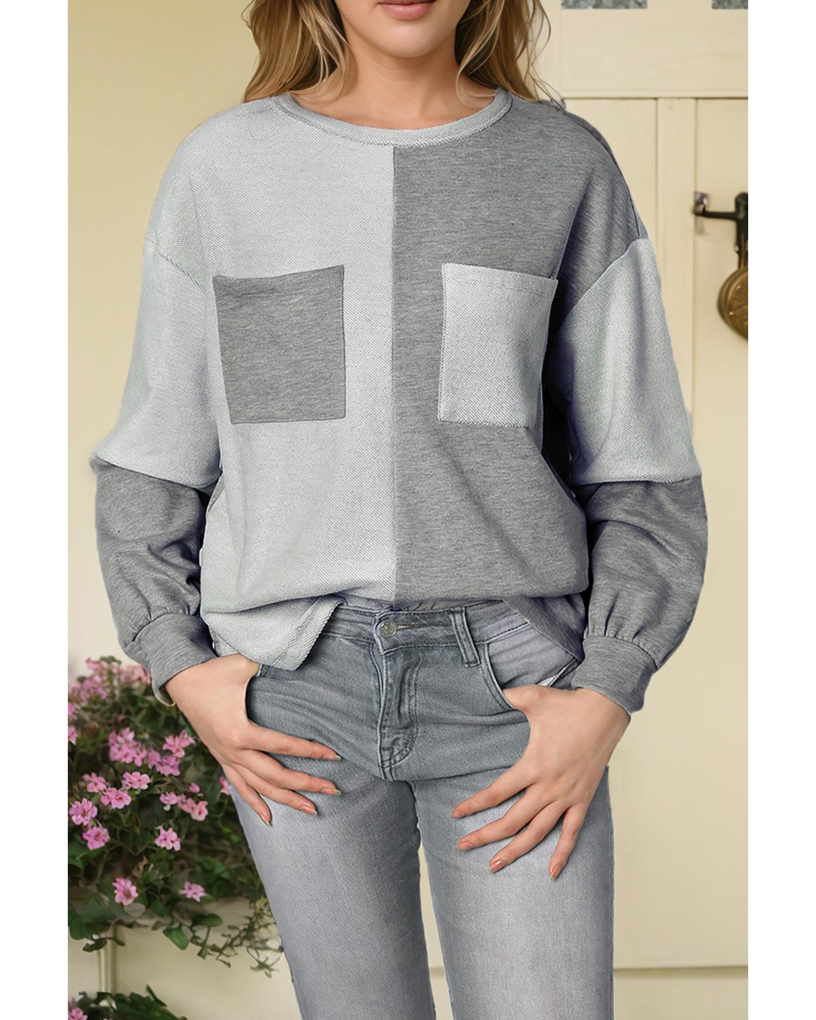 Gray Contrast Patchwork Double Chest Pocket Top – M