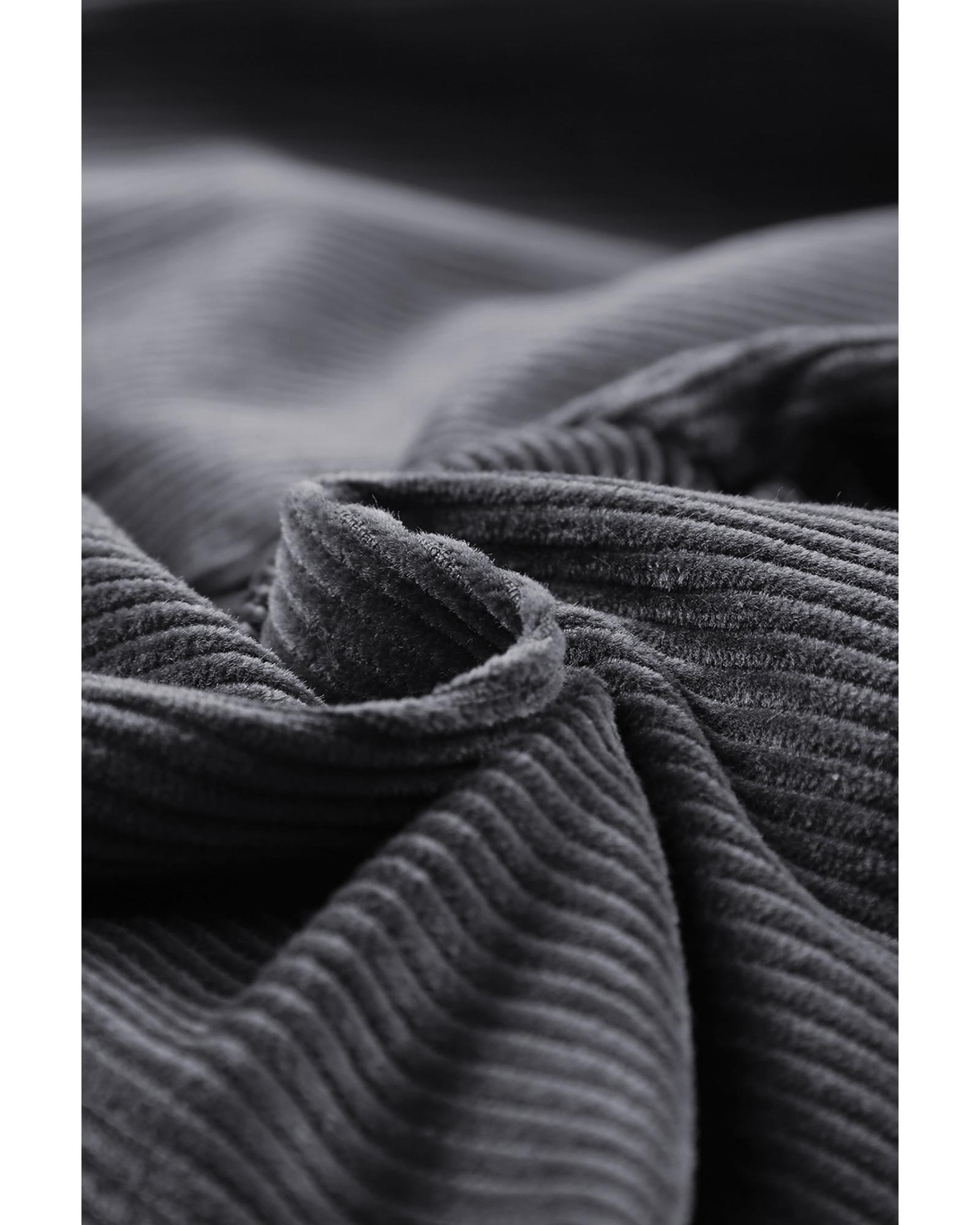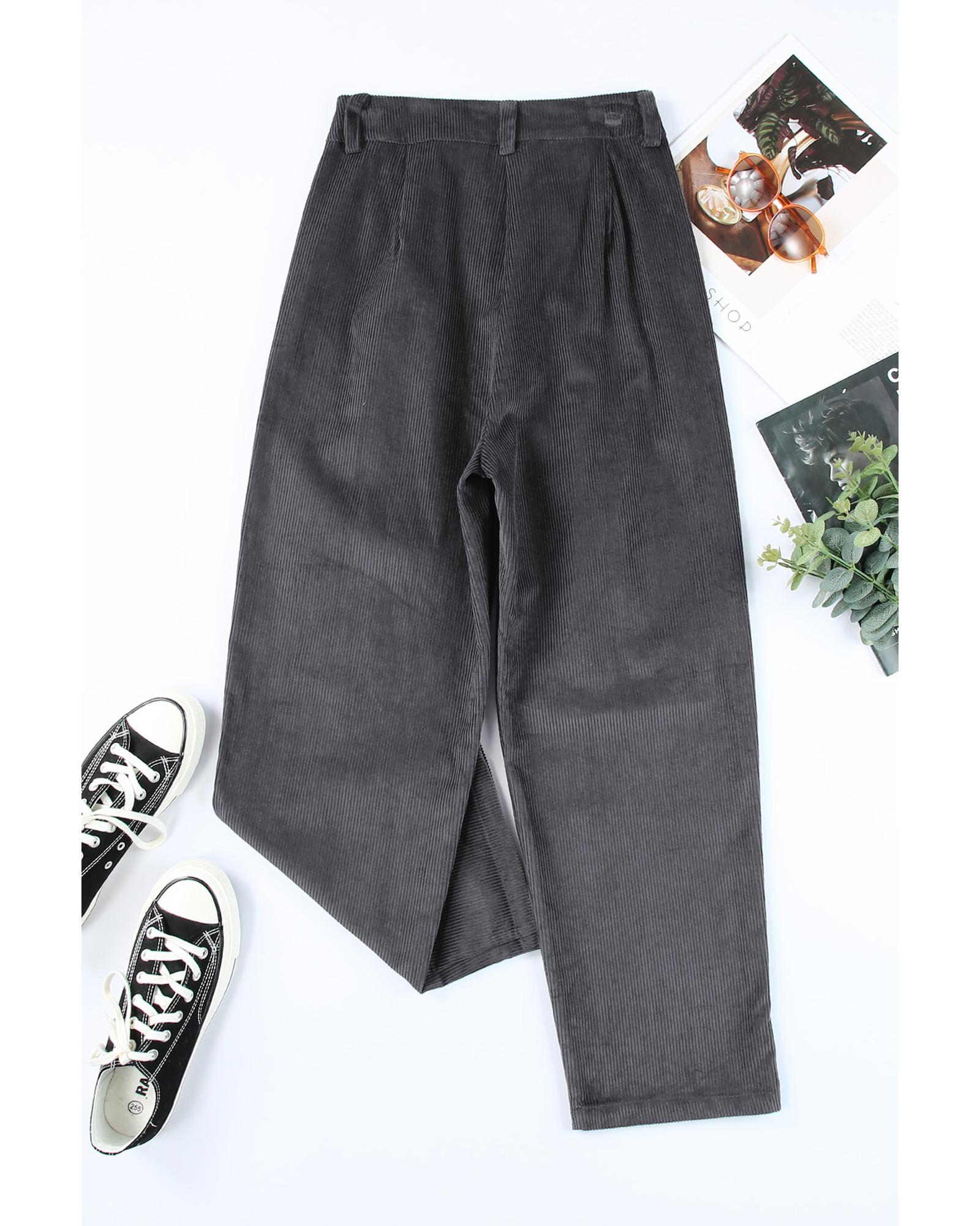 Gray corduroy pants suitable for cold winter days Features a zipper and button closure pockets high waist and solid color Great choice for leisure time shopping school home wear and casual daily wear Can be easily paired with t