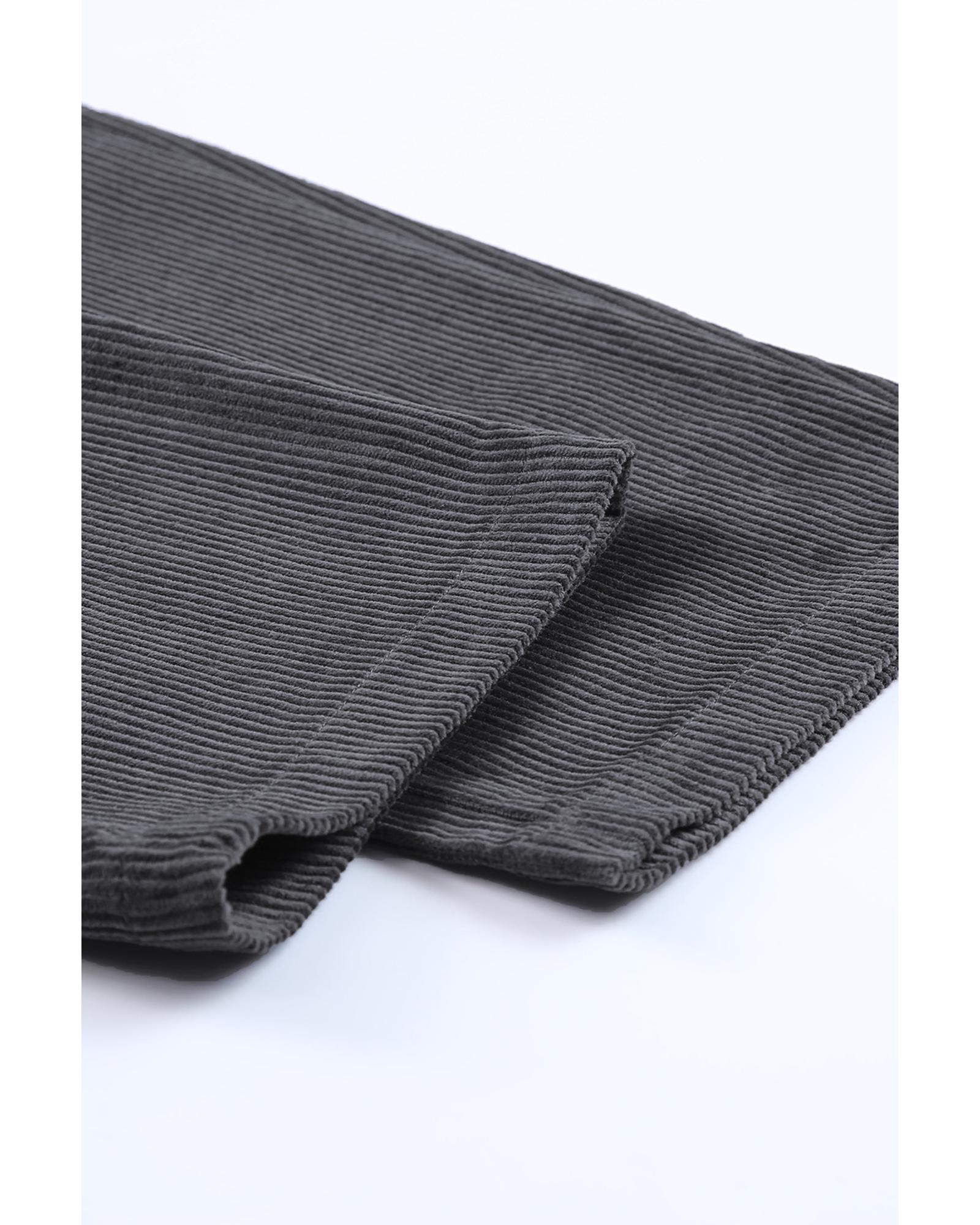 Gray corduroy pants suitable for cold winter days Features a zipper and button closure pockets high waist and solid color Great choice for leisure time shopping school home wear and casual daily wear Can be easily paired with t - shirts crop tops and casual shoes Available in a variety of sizes