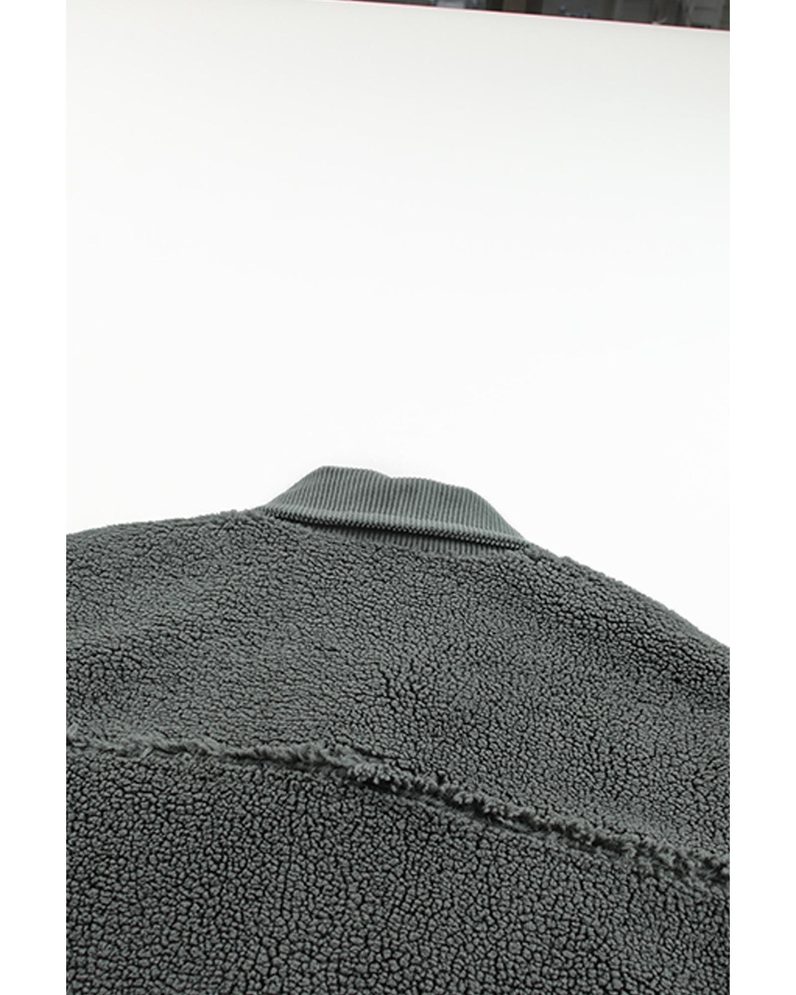 Gray Corduroy Trim Elbow Patch Sherpa Jacket – L