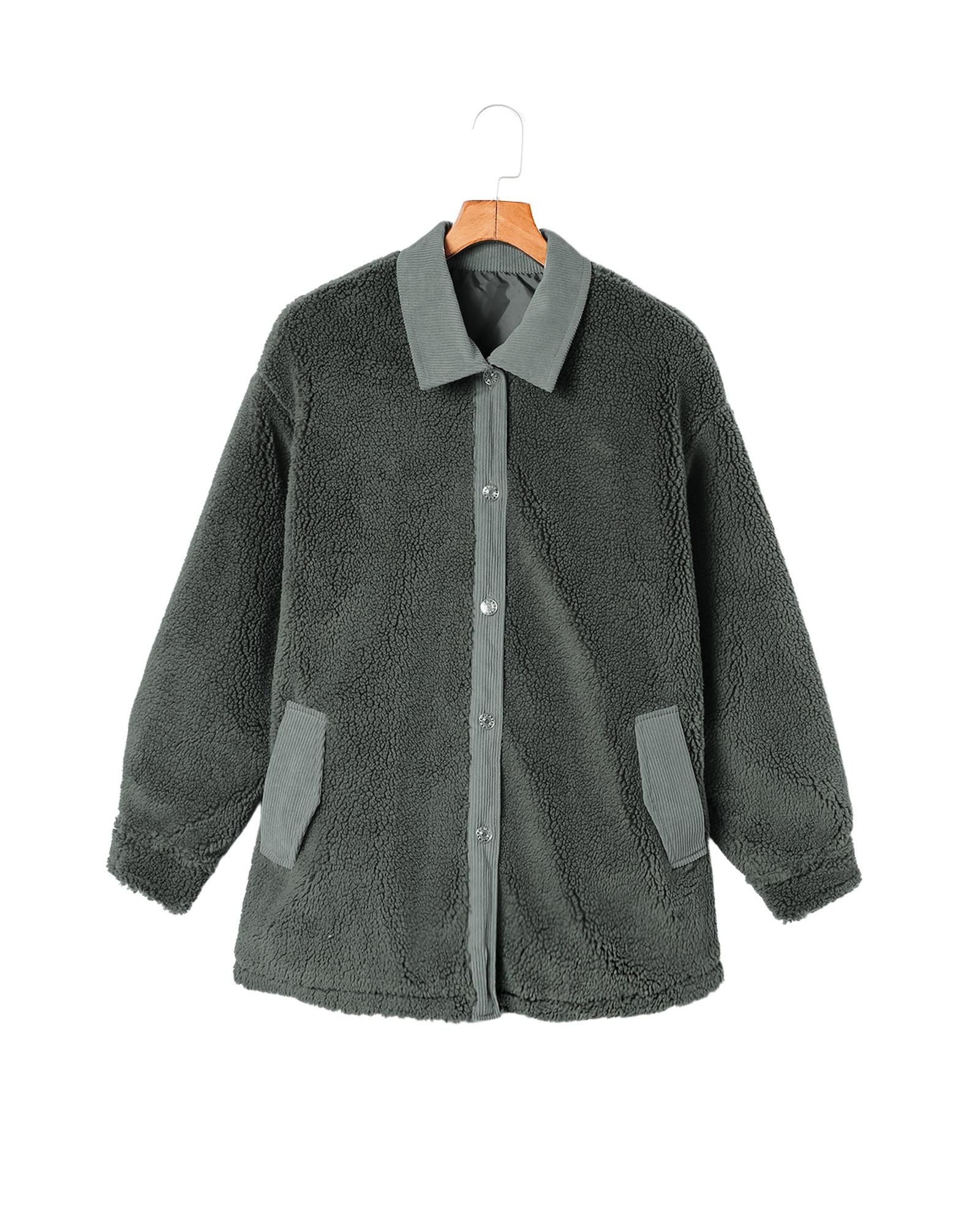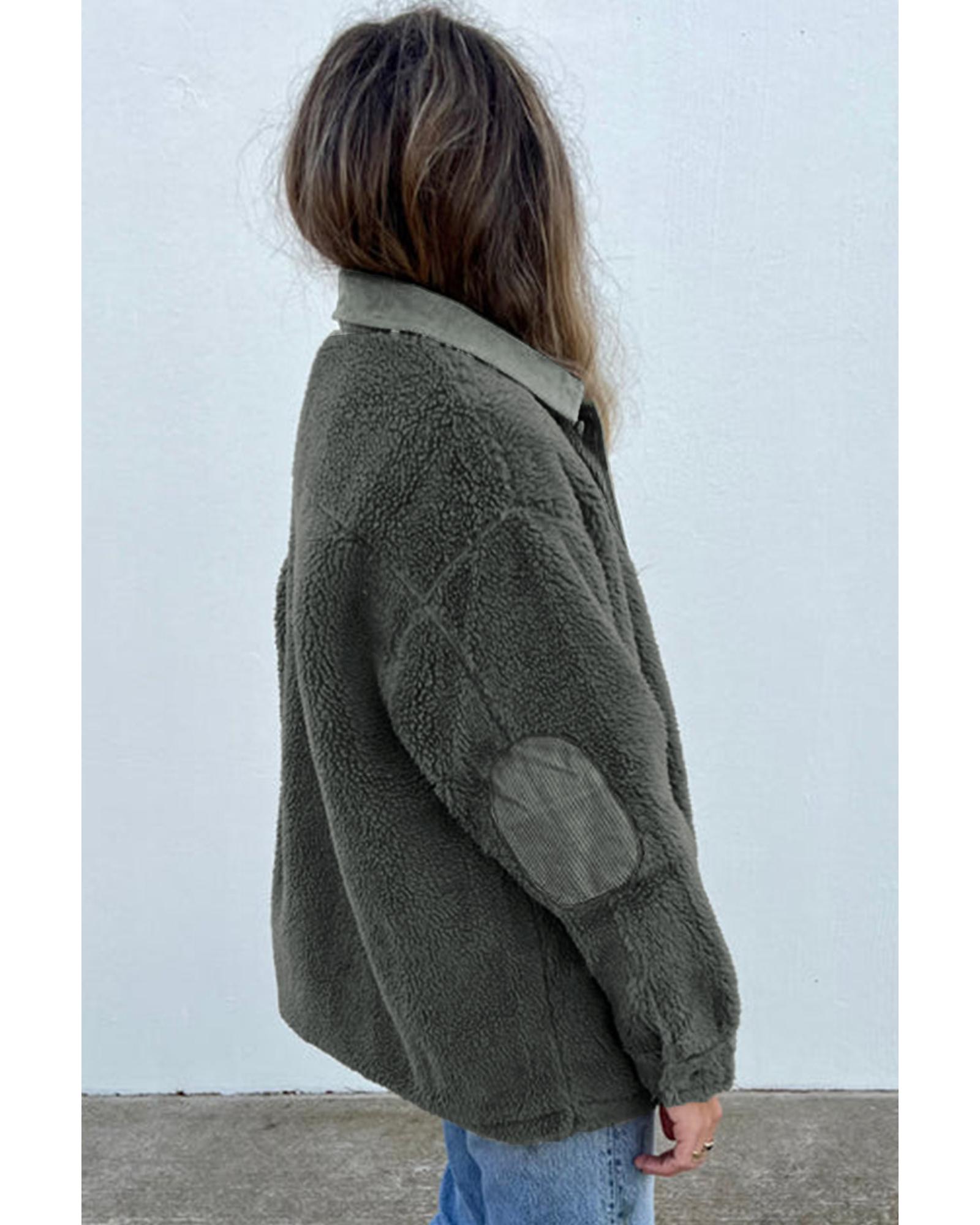 Gray Corduroy Trim Elbow Patch Sherpa Jacket – XL