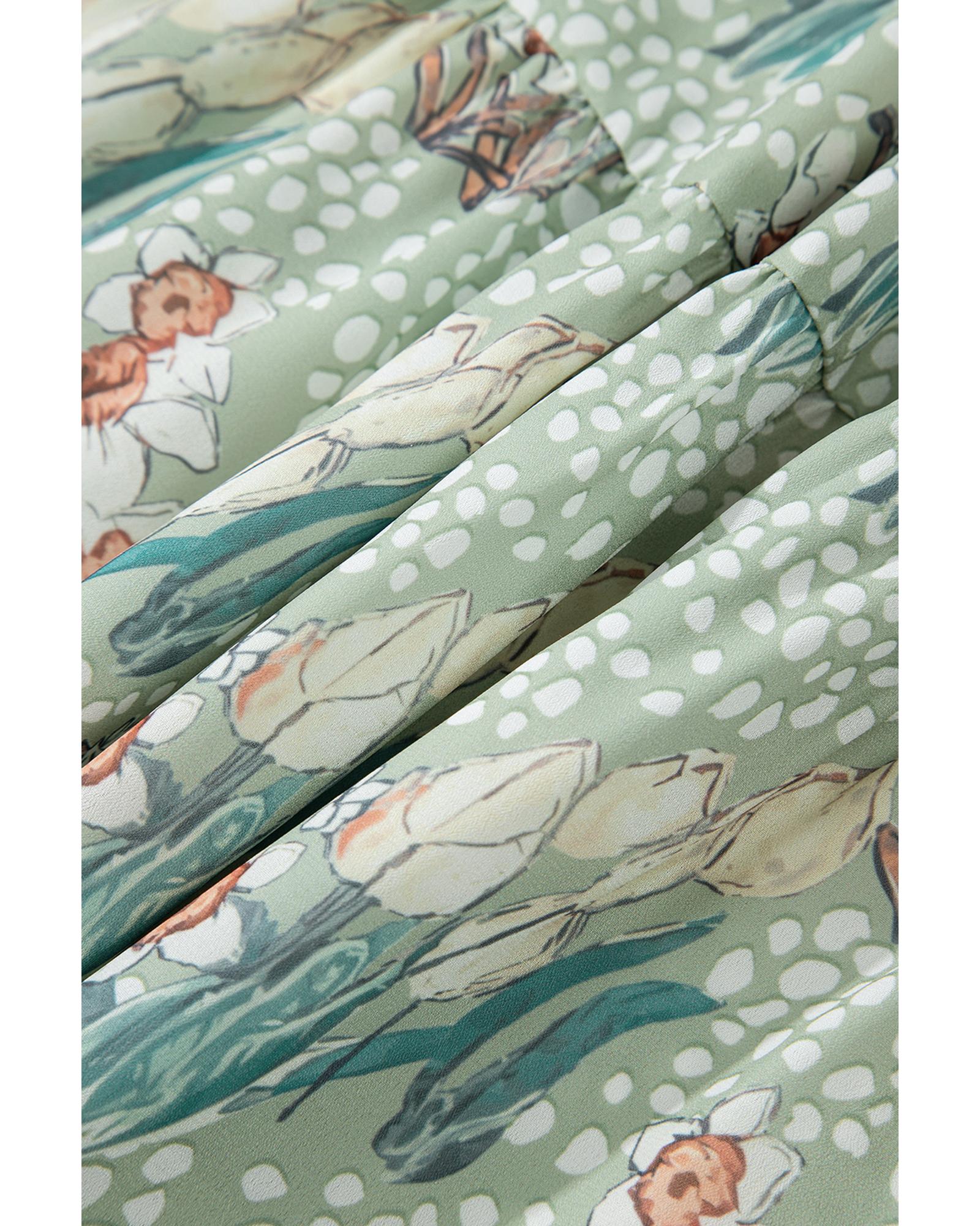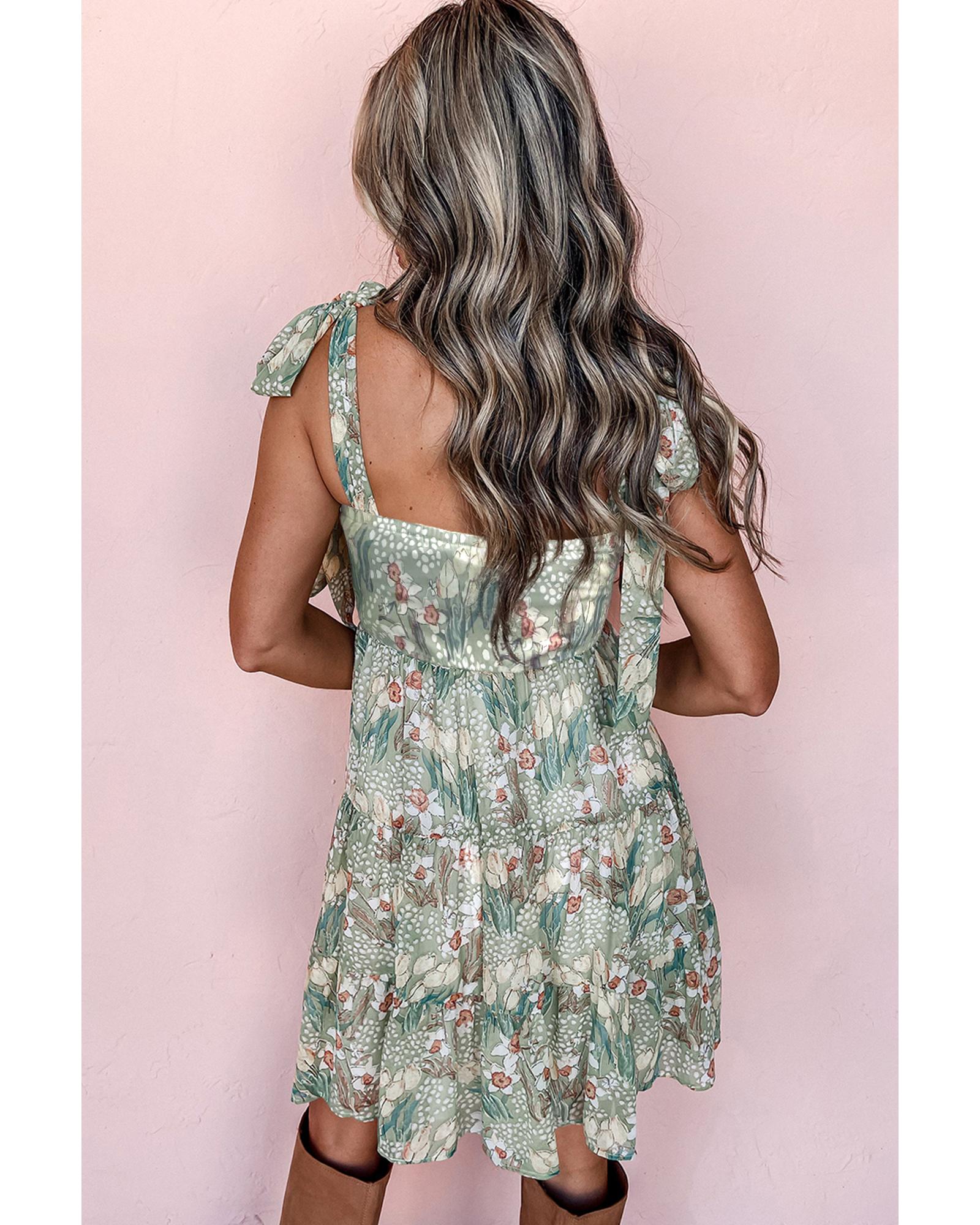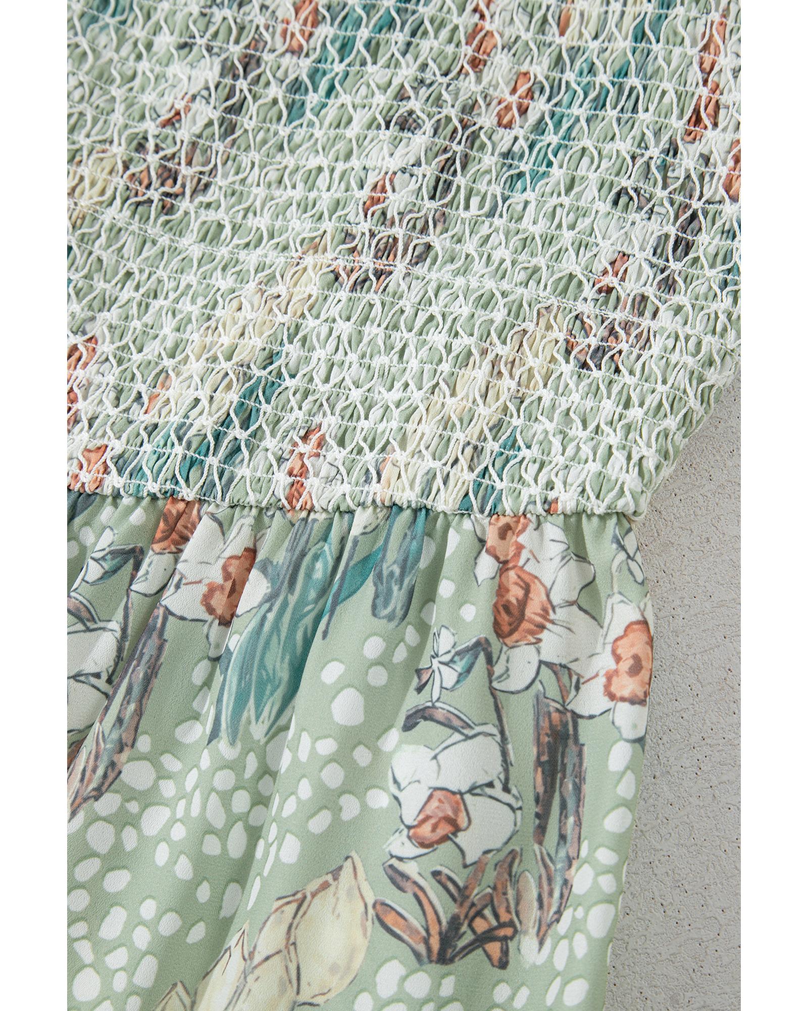 - Gray Floral Knotted Strap Smocked Tiered Ruffle Mini Dress