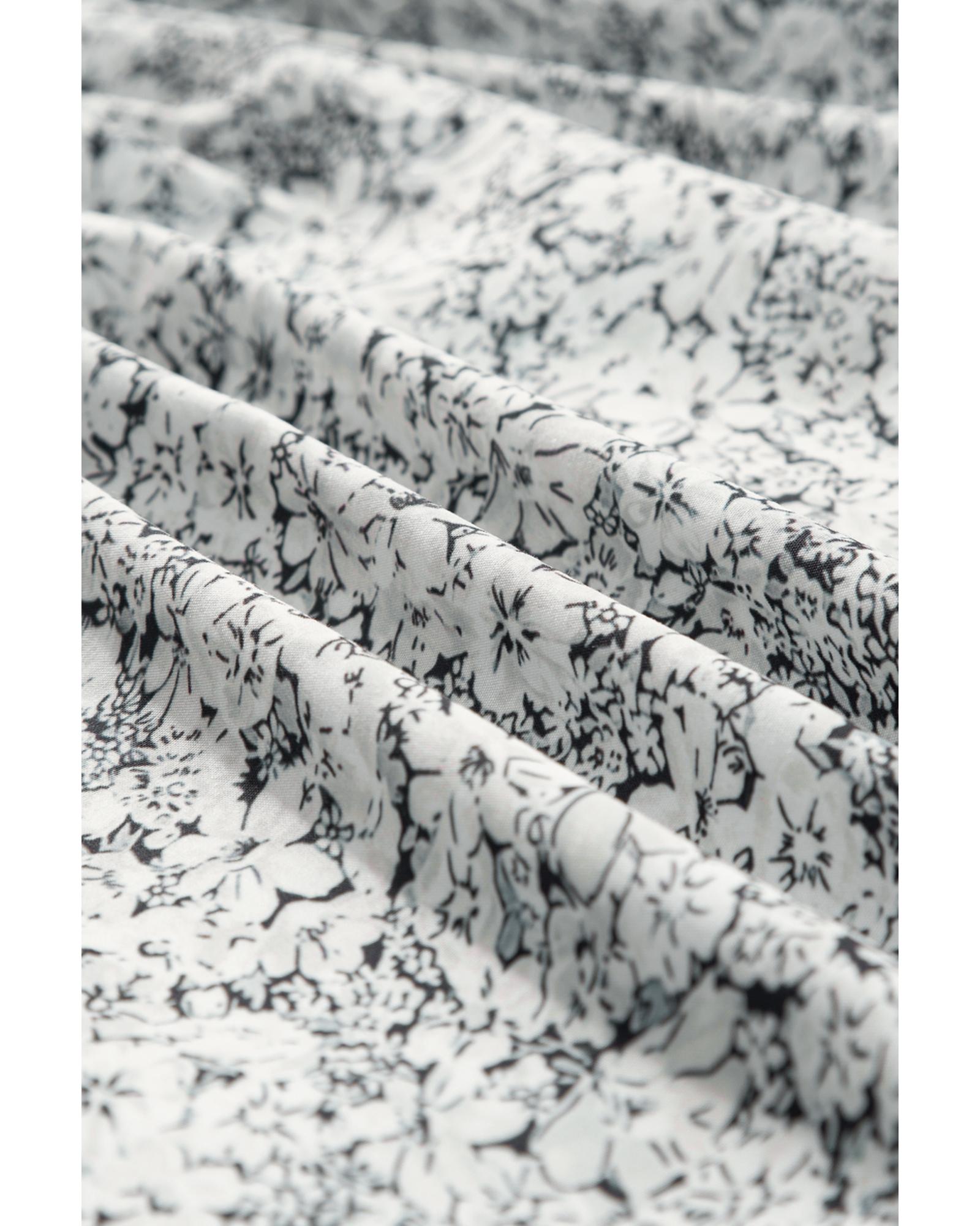 Gray Floral Print Open Back Balloon Sleeve Square Neck Mini Dress – M