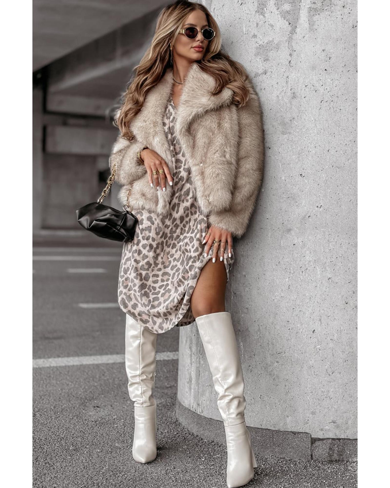 Gray Leopard Print V Neck Loose Fit Mini Dress - S