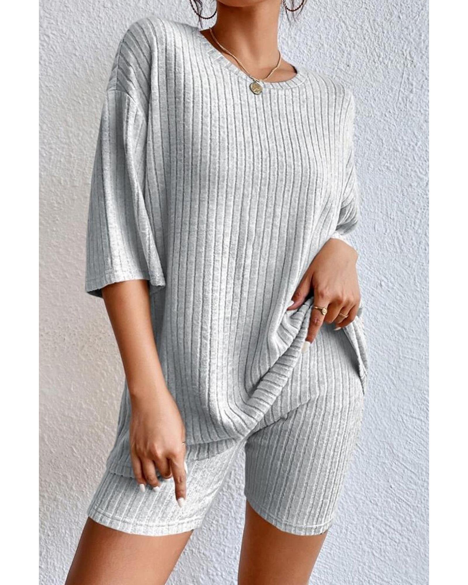 Gray Plain Ribbed Loose Fit Two Piece Lounge Set – L