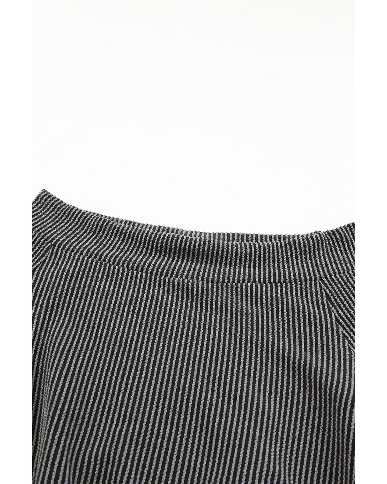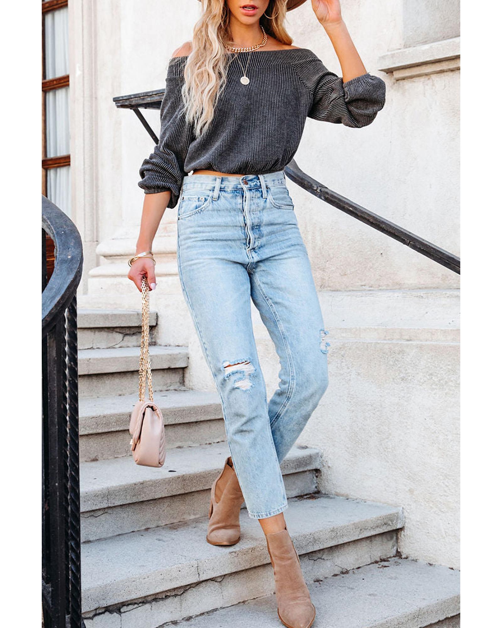 Gray Ribbed Knit Off-Shoulder Balloon Sleeve Top – M