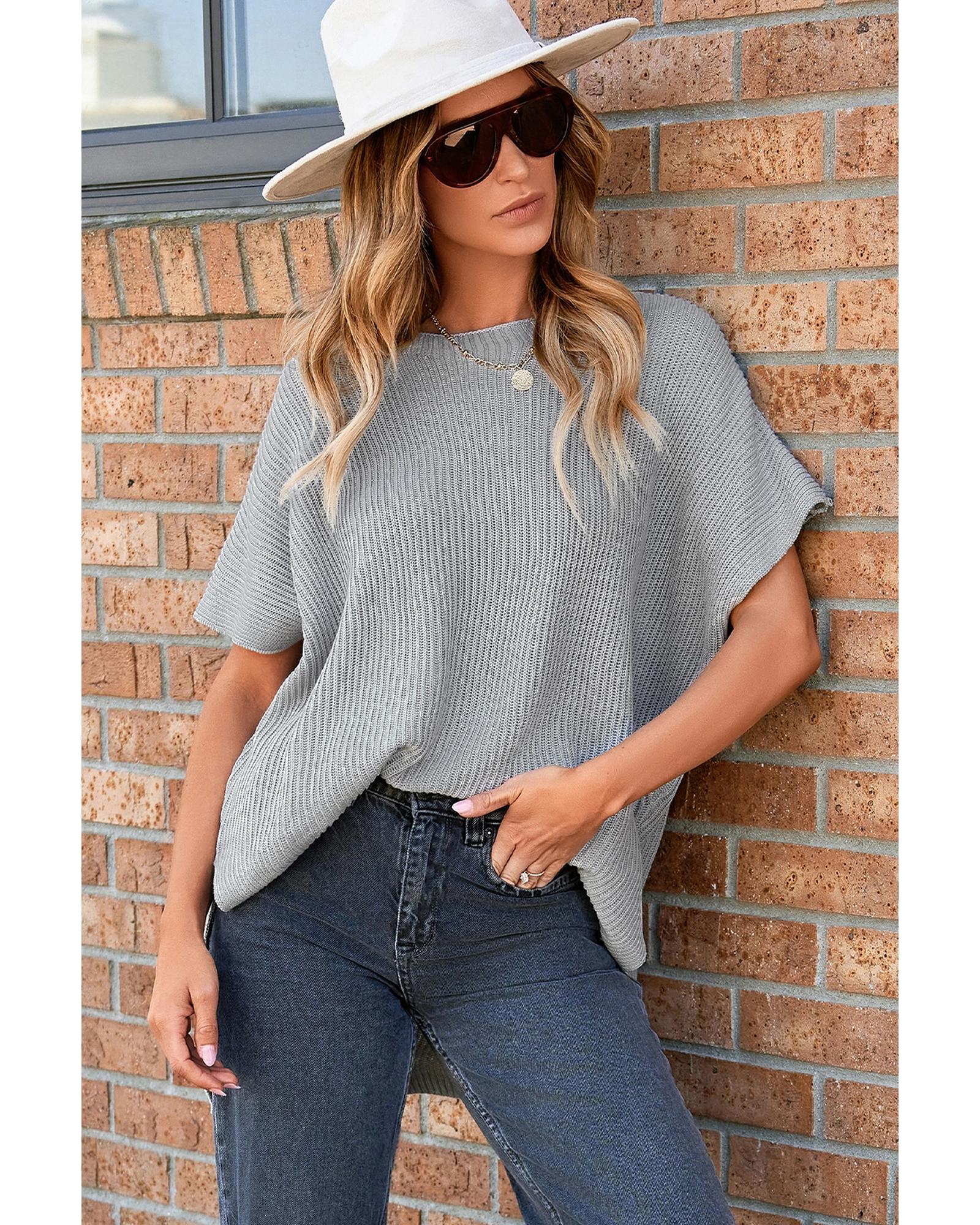 Gray Short Sleeve Side Slit Oversized Sweater - M Original price was: $60.99.Current price is: $32.99.