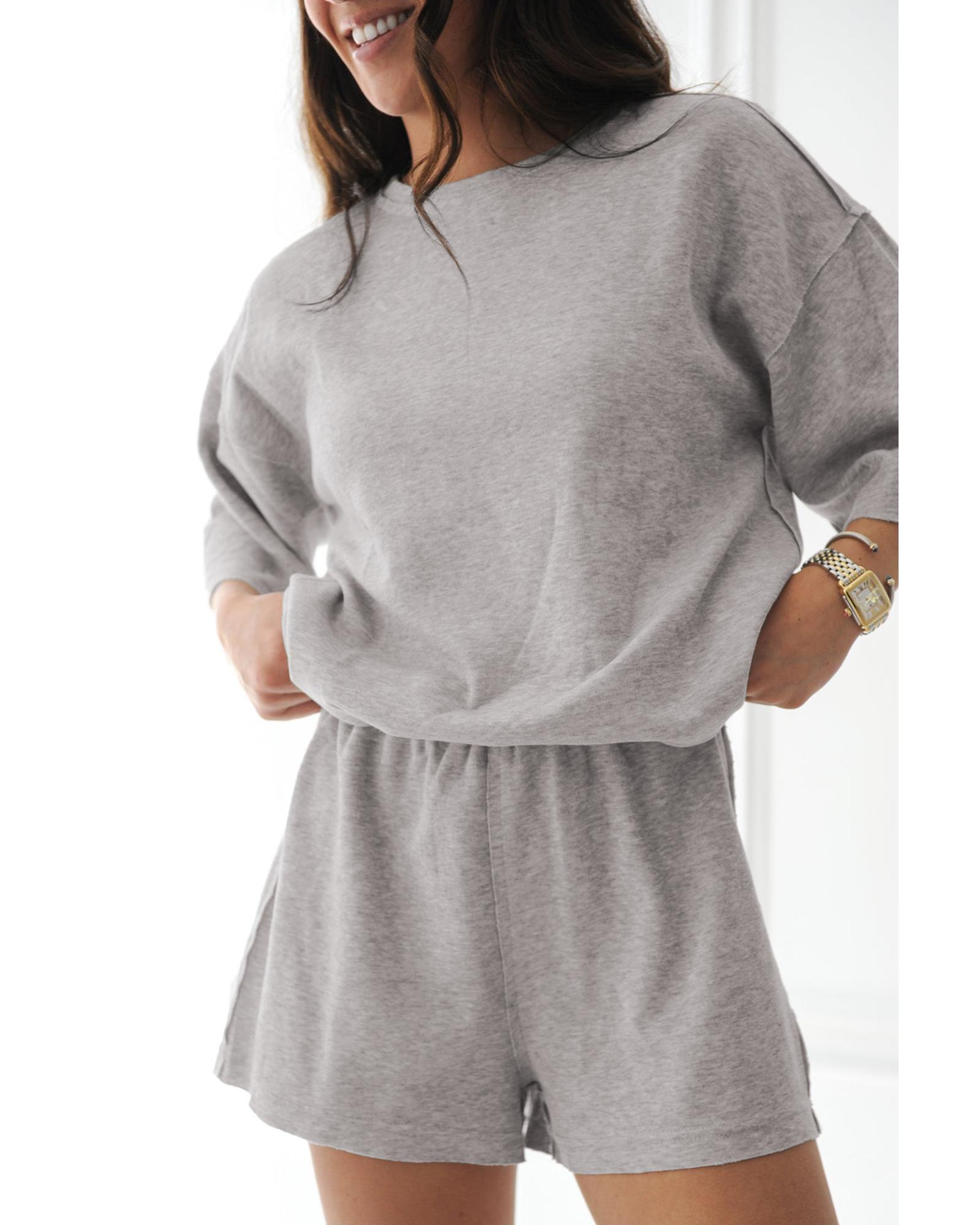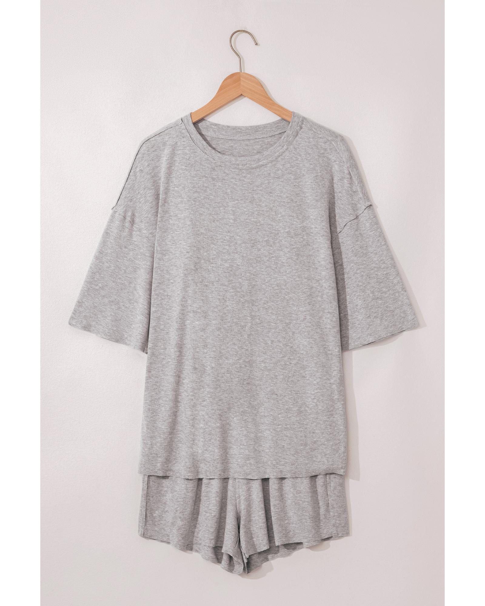 Gray Solid Color Loose Tee 2 Piece Shorts Set – S